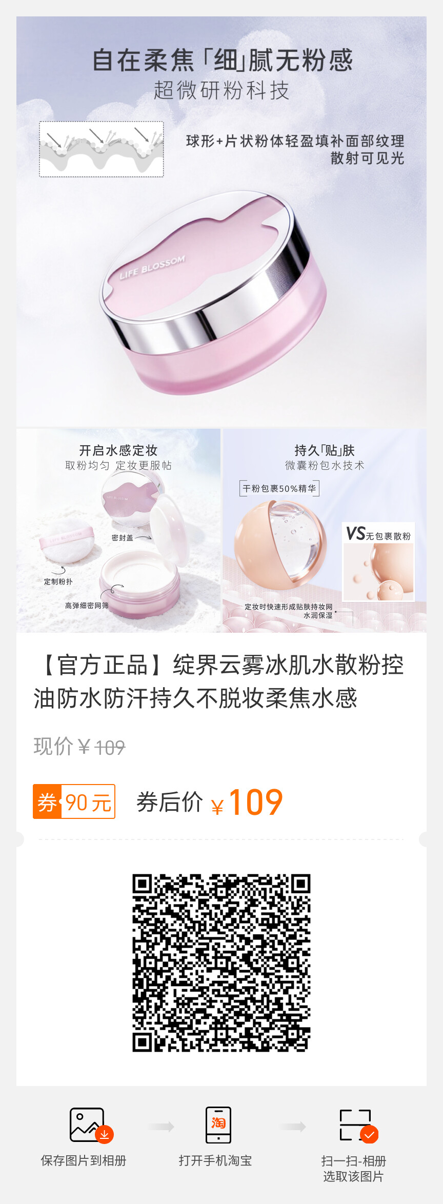 官方正品、绽界云雾冰肌水、散粉、控油防水、不脱妆、柔焦水感