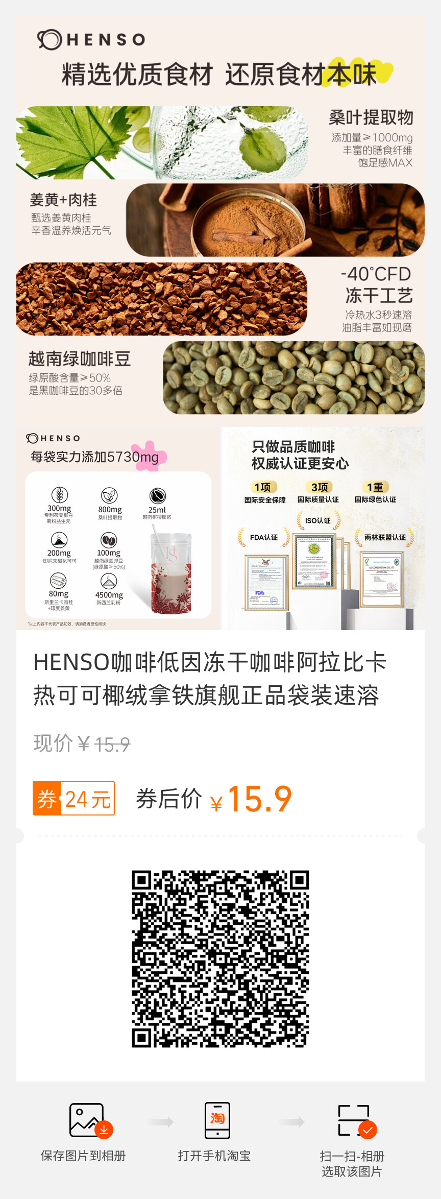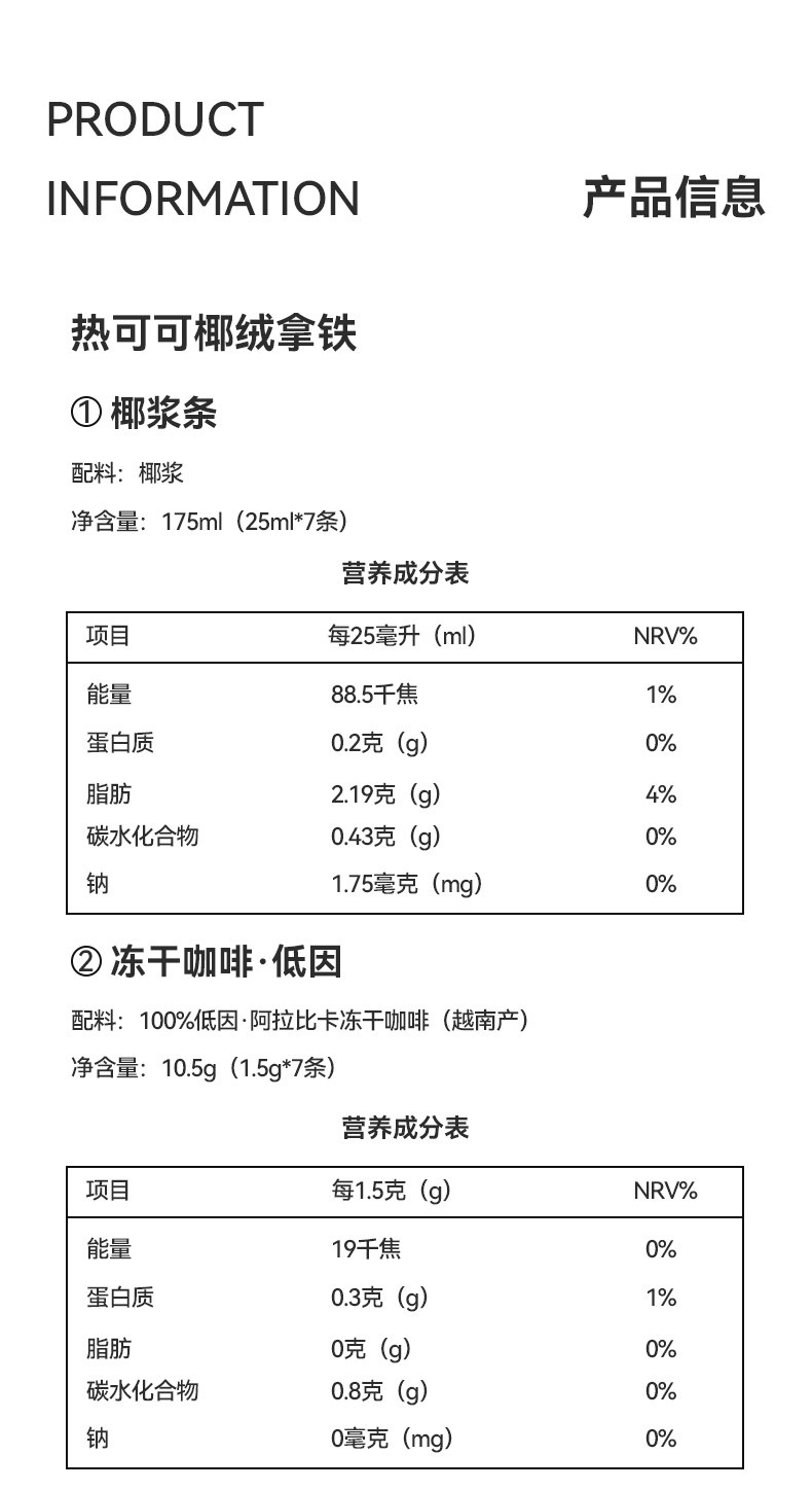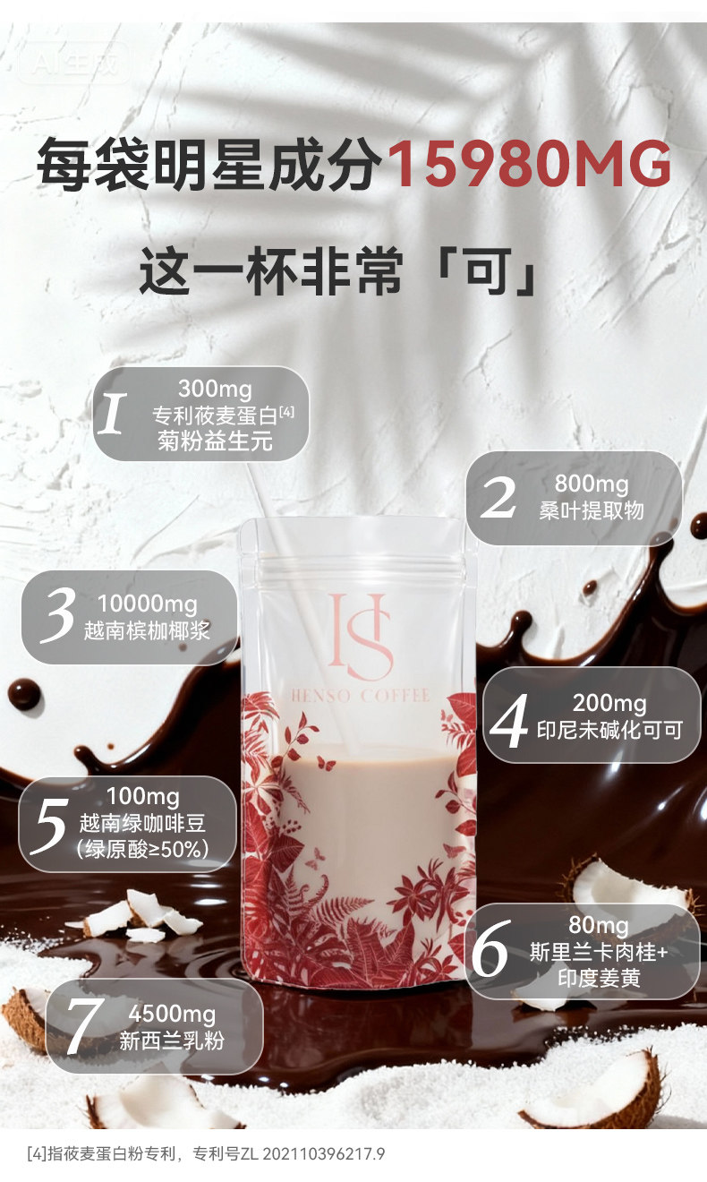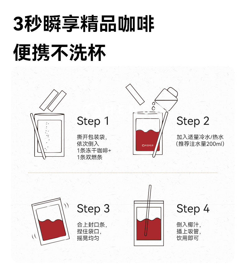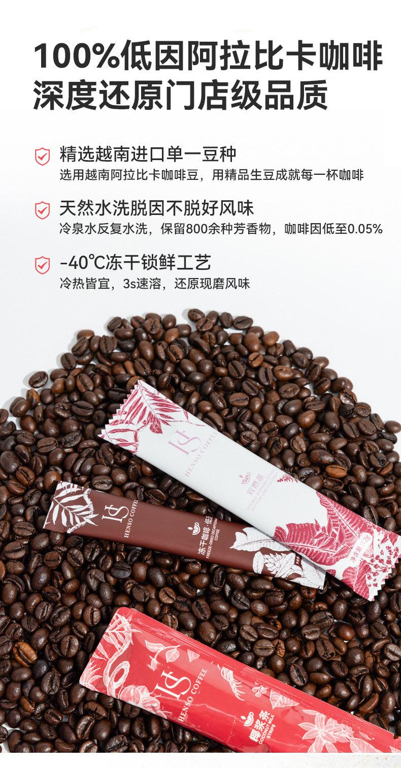 HENSO咖啡、低因冻干、阿拉比卡、热可可椰绒拿铁、旗舰正品、速溶