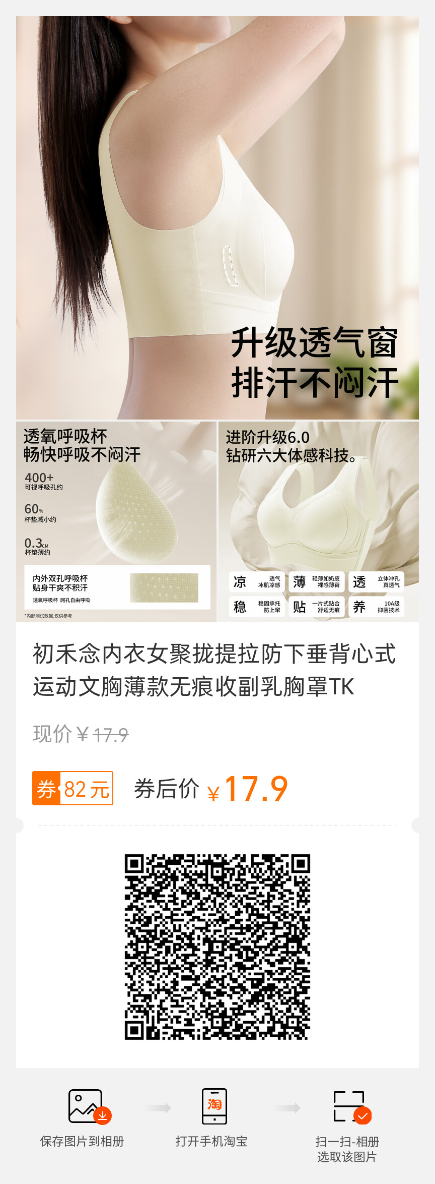 初禾念内衣、聚拢提拉、防下垂、运动文胸、薄款无痕、收副乳