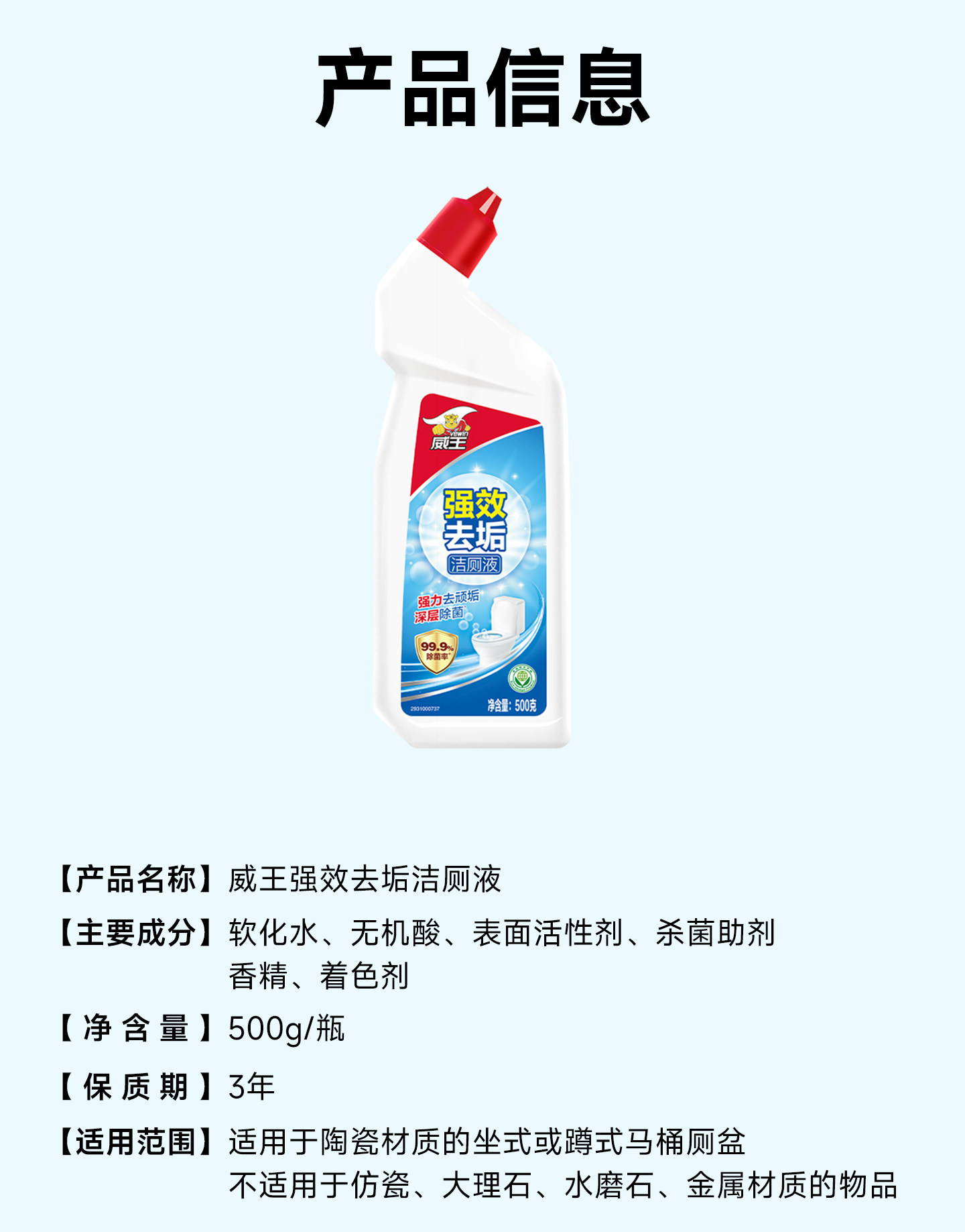 威王洁厕灵液、强力除垢、除臭去异味、留香、去污去黄、厕所马桶清洁剂