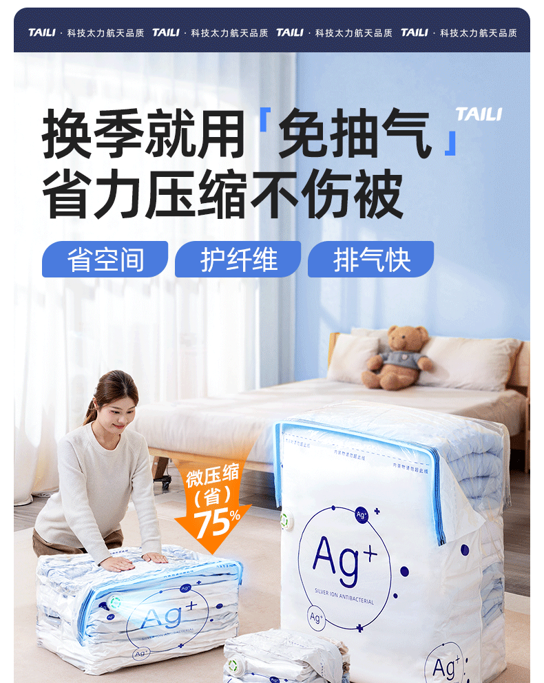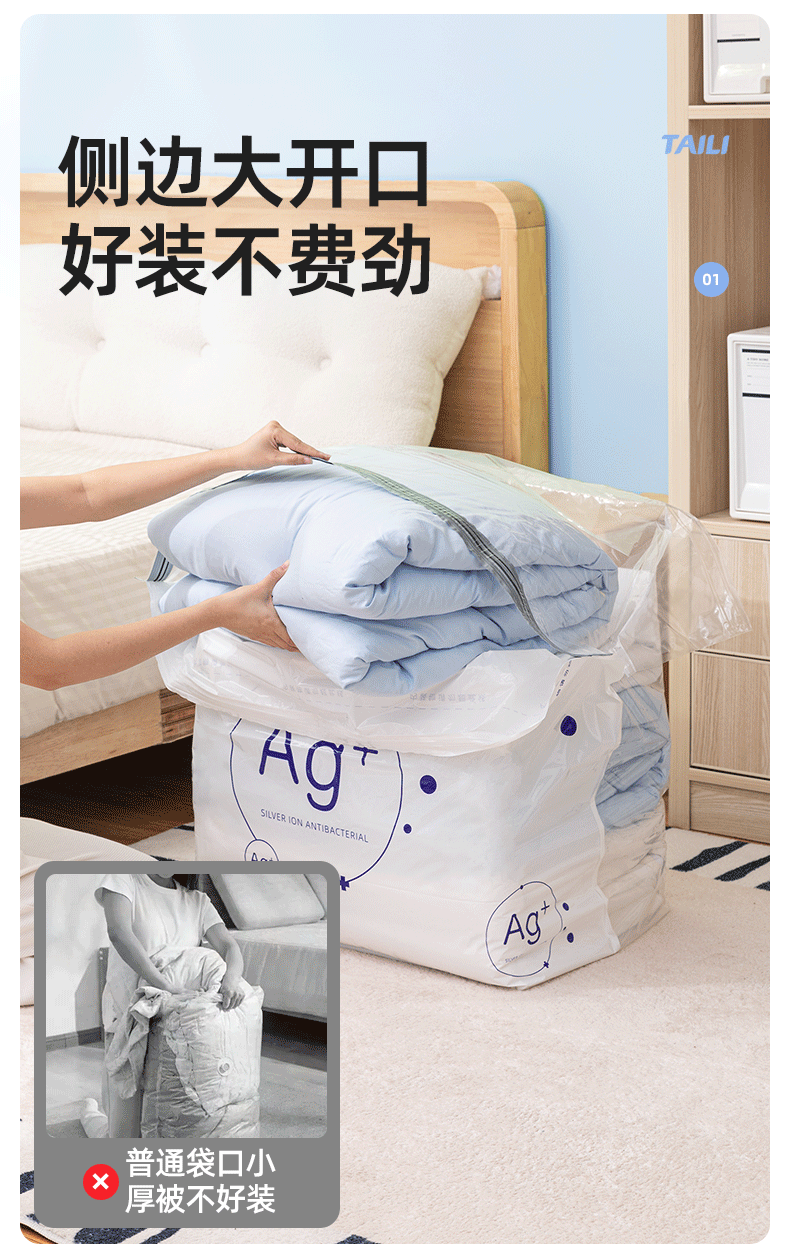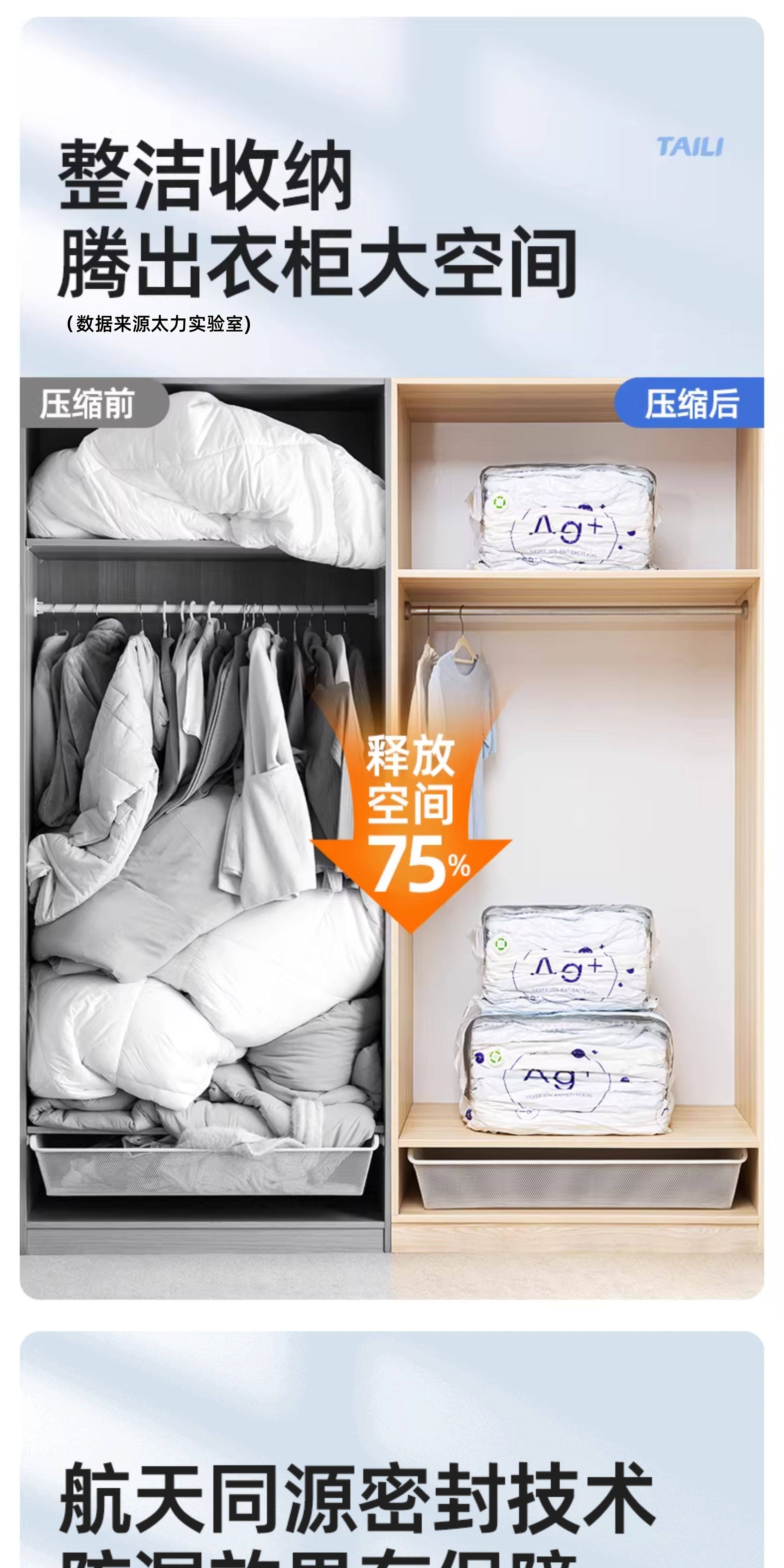 太力抗菌、真空压缩、收纳袋、装被子、免抽气、立体袋子