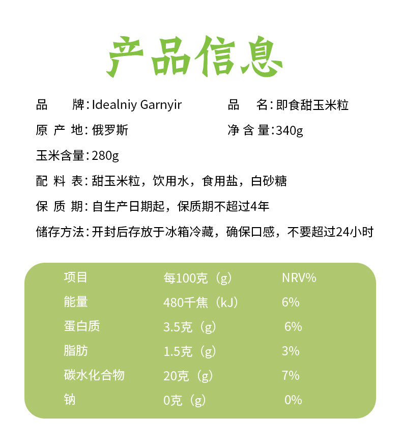 俄罗斯进口 即食 甜玉米 素食 轻食