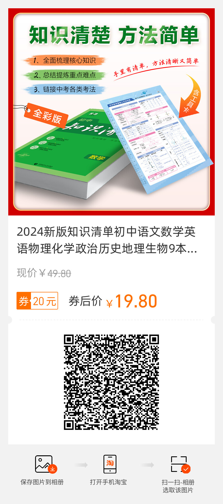 “ 有活动了!速度盘!2024 新版 知识清单 初中基础知识大全教 中考 总复习资料券后价:19.80元【淘口令】¥ HU0854 kEzAWl38eHf¥2024