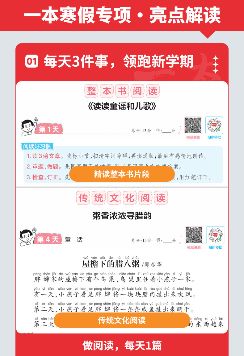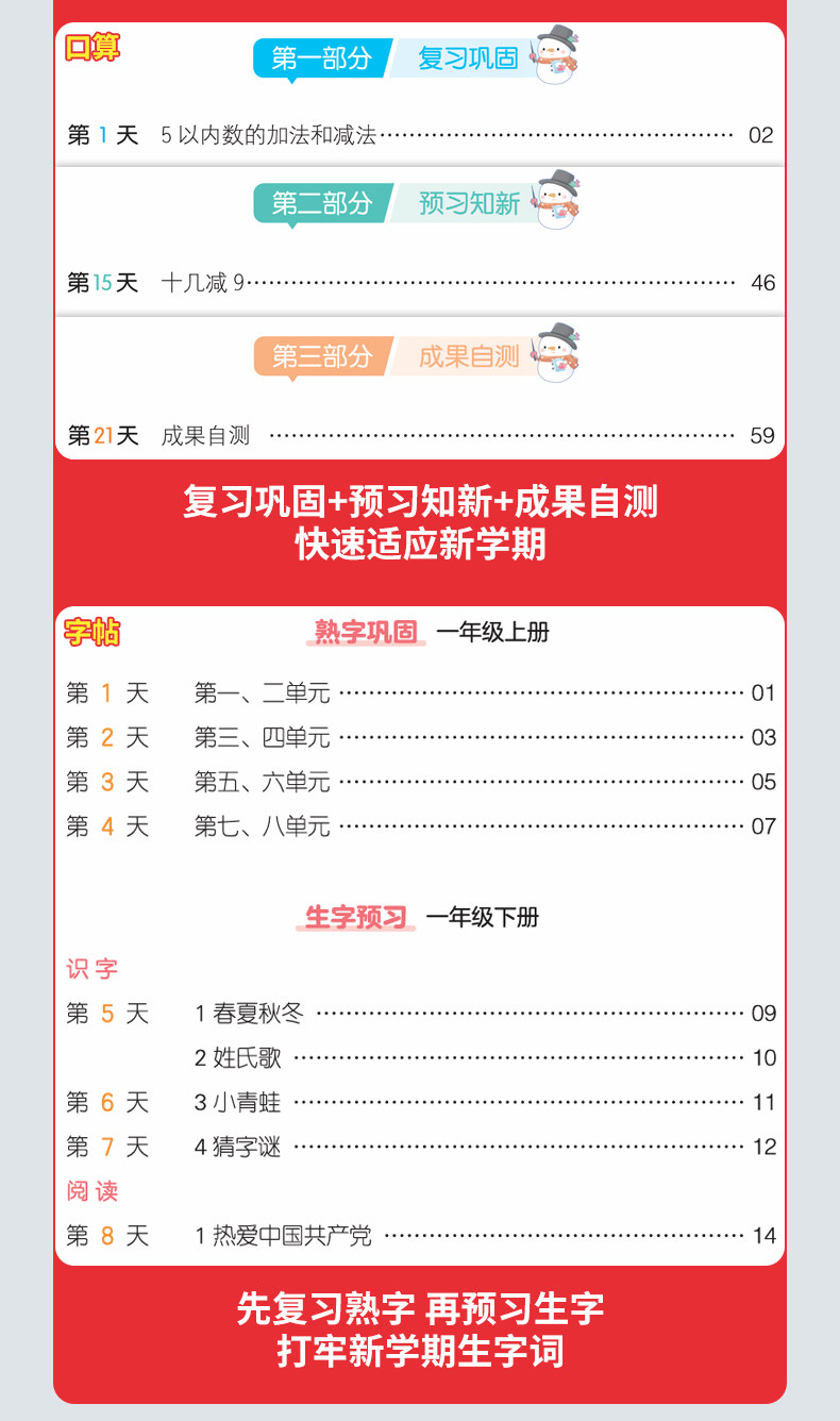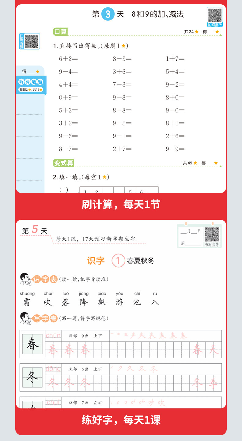 新一本、寒假练字帖、语文阅读、数学口算、寒假作业练习、知识衔接、28天打卡