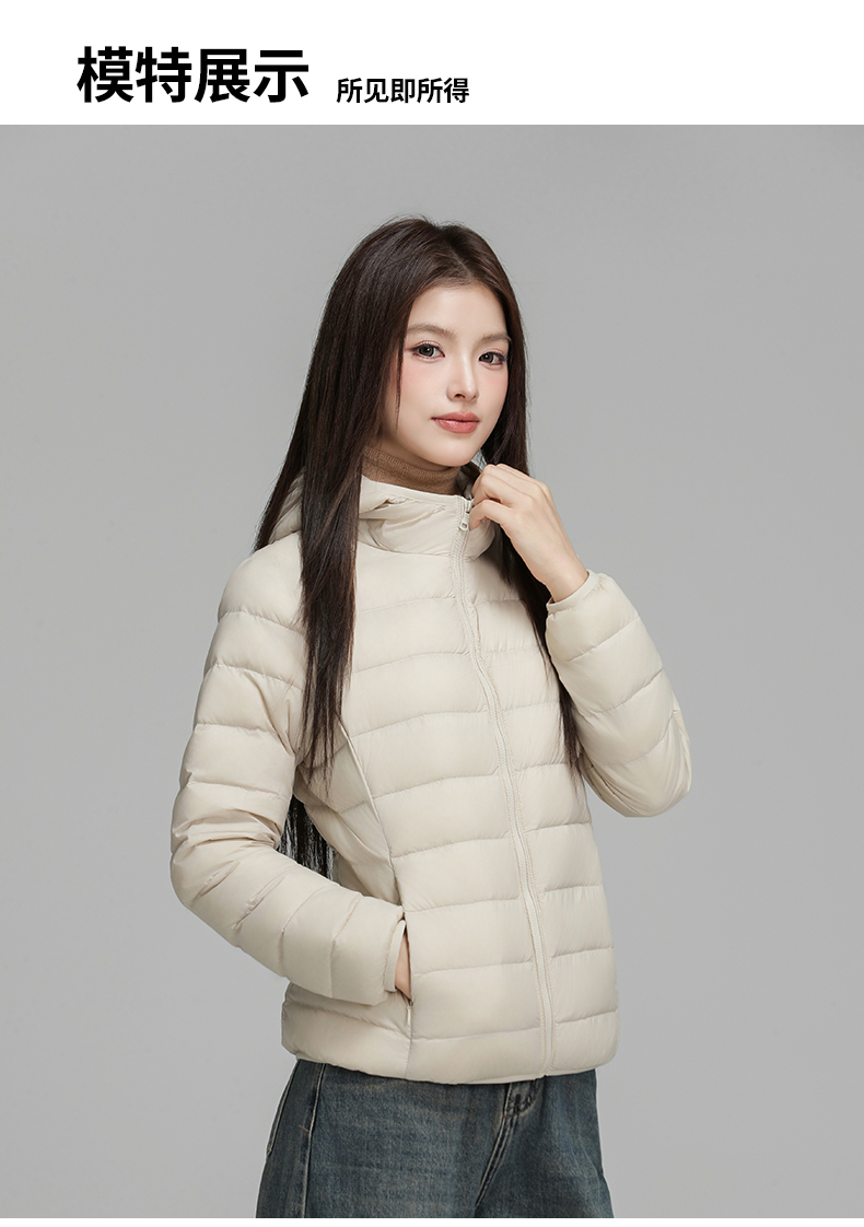 拉夏贝尔、轻薄羽绒服、女短款、鸭绒、时尚爆款、秋冬连帽、轻便外套