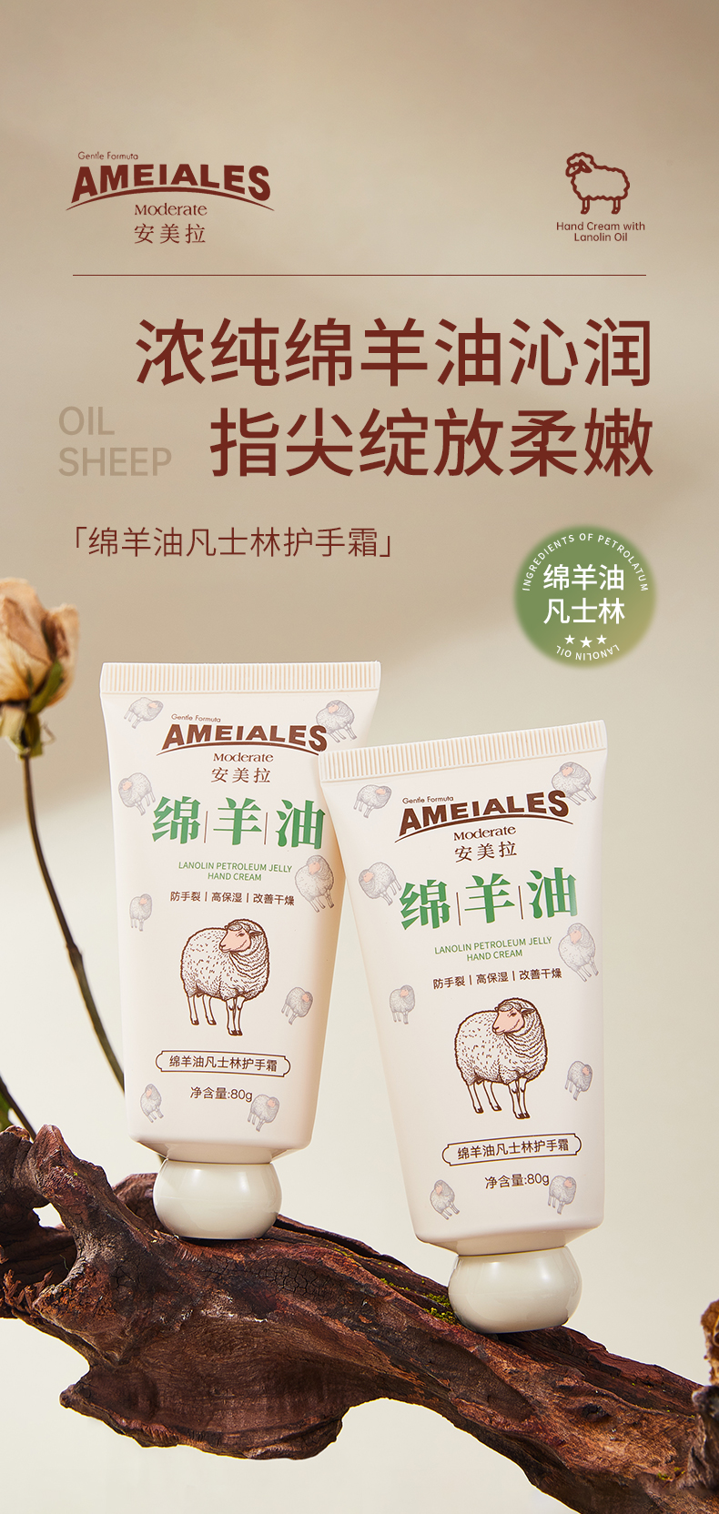 安美拉、绵羊油凡士林、护手霜、滋润保湿、防干裂、小支便携