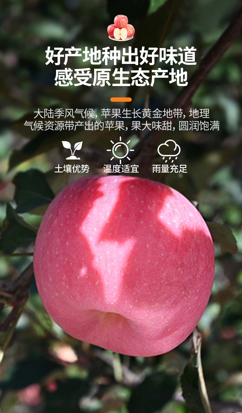 “ 正宗烟台红富士苹果来啦!产自栖霞的它,品质超棒。每一颗苹果都新鲜饱满,是当季水果中的佼佼者。咬上一口,脆甜多汁,满满的果香在口中散开,让人回味无穷。而且整箱10斤装,量大实惠,还包邮到家,让你足不出户就能品尝到这份美味。无论是自己吃,还是和家人朋友分享,都是绝佳选择。