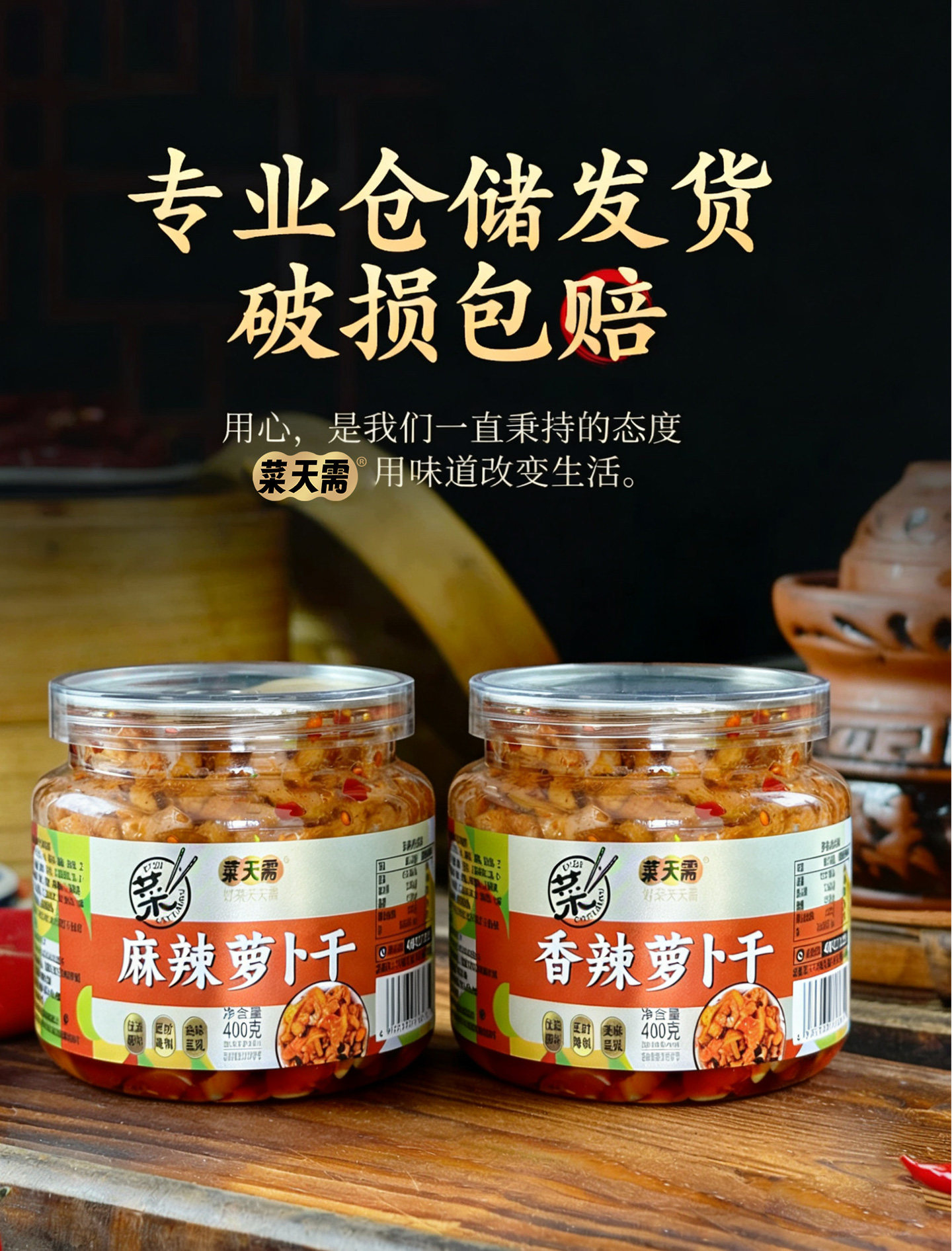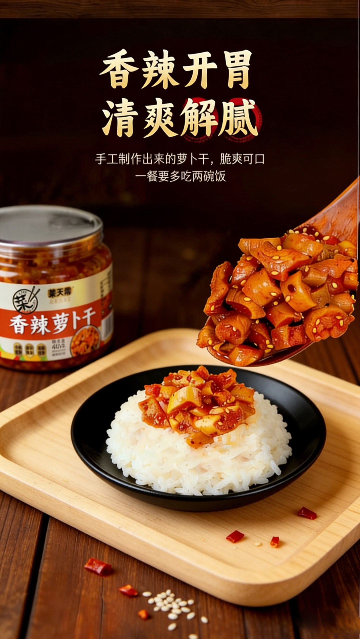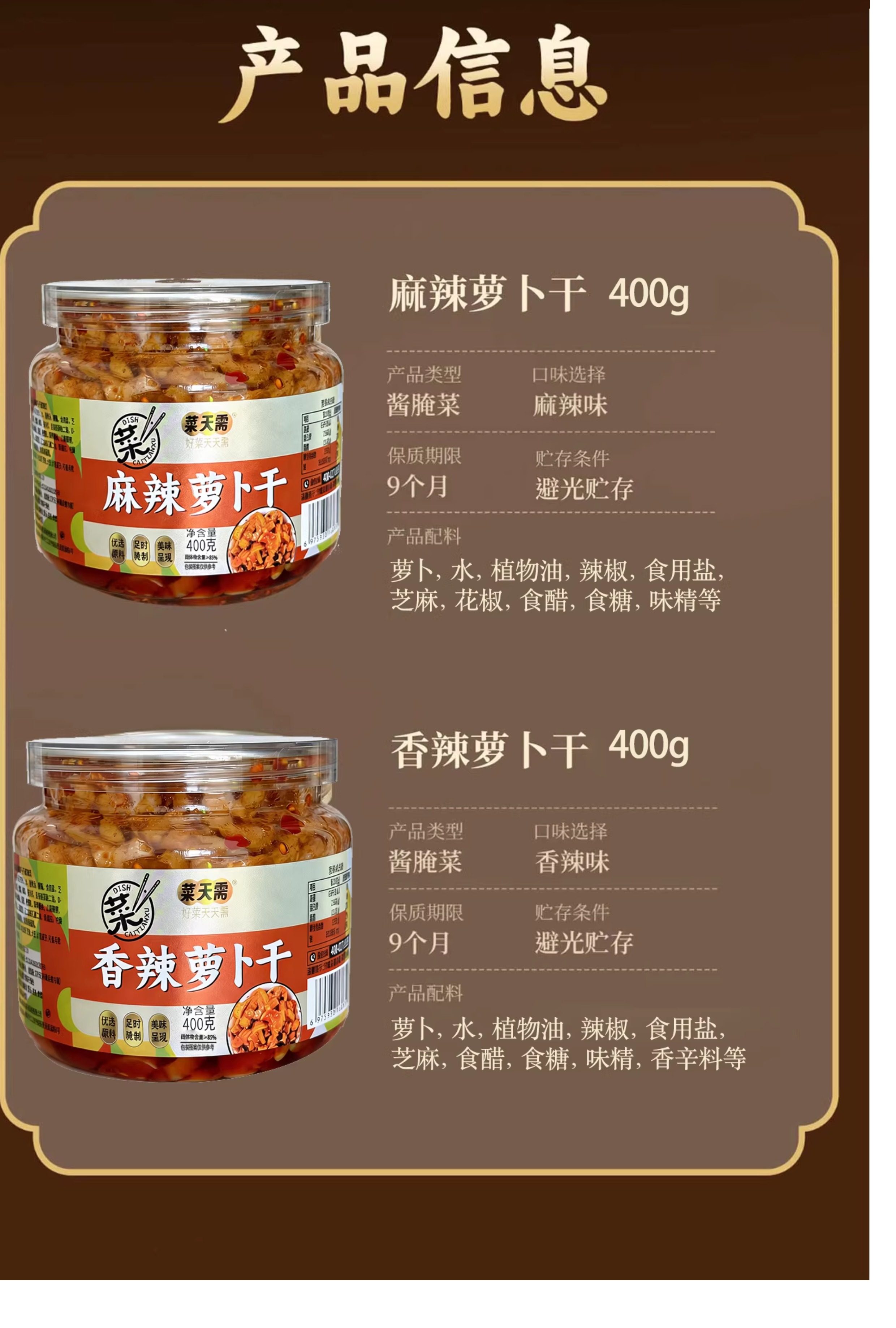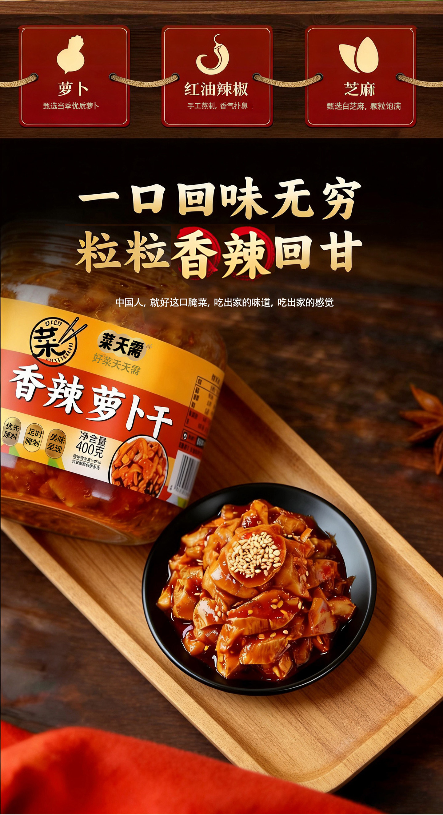 菜天需、下饭菜、香辣萝卜干、开胃菜、酸辣萝卜干、罐装即食、大瓶装、爽脆酱菜
