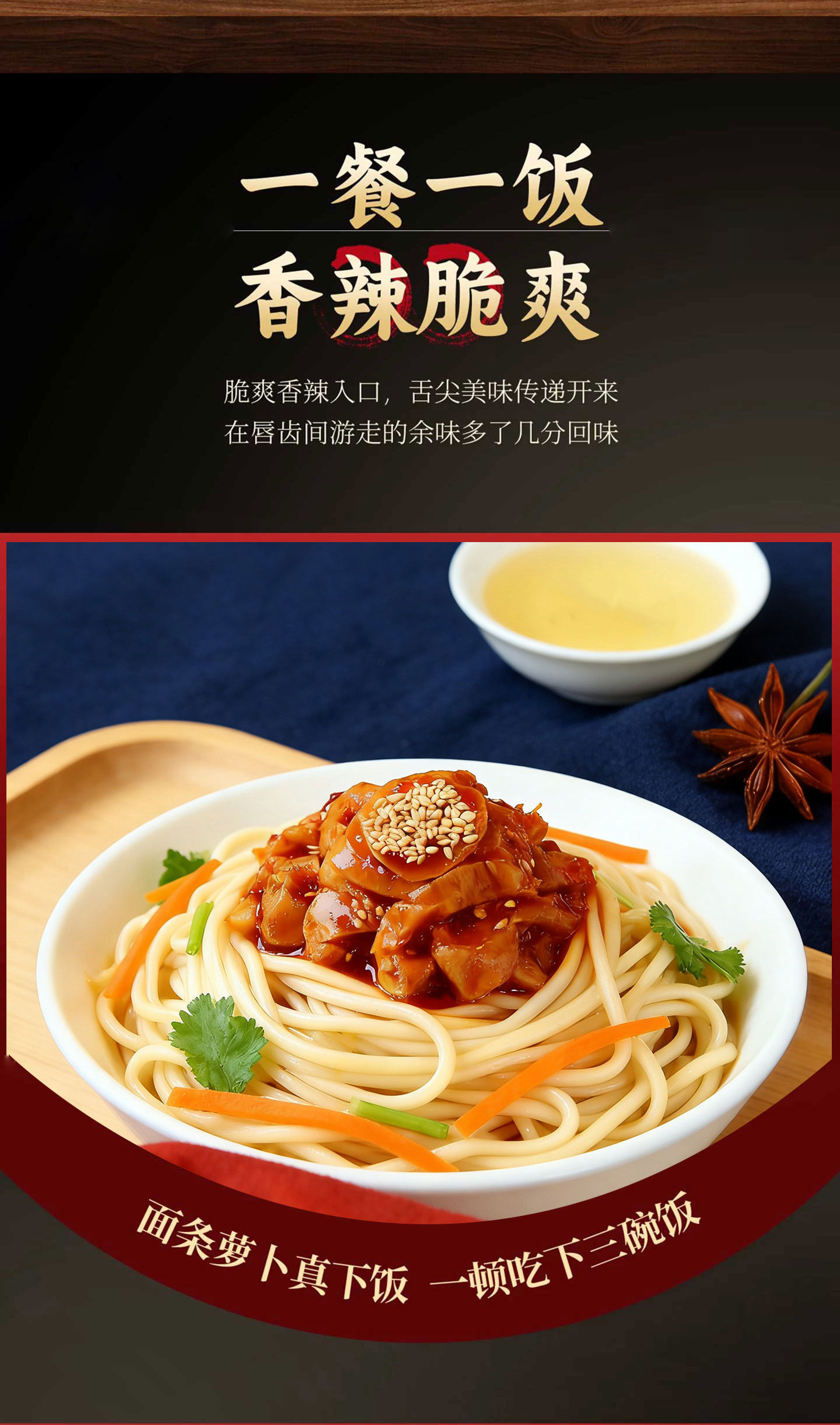 “ 菜天需下饭菜,有香辣与酸辣两种口味的萝卜干可选。采用罐装设计,大瓶装分量足,开盖即食超方便。萝卜干口感爽脆,是美味的酱菜,能瞬间打开你的味蕾,作为开胃菜再合适不过,无论是搭配米饭还是粥品,都别有一番风味。
