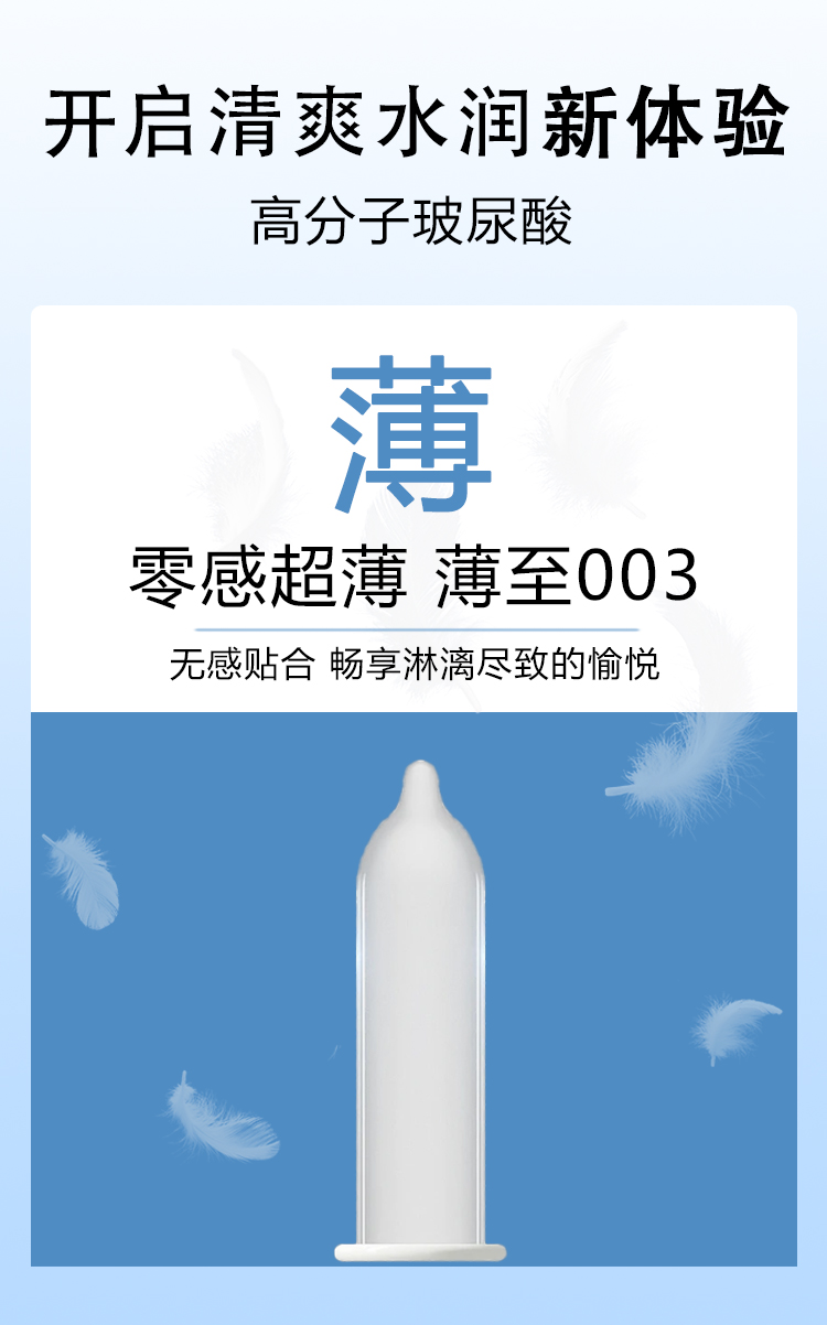 “ 冈岛正品推出的这款003单支装避孕套,是专为男士设计的体验装。它采用超薄材质,带来近乎无感的亲密体验,同时融入玻尿酸成分,更加水润舒适。作为男用安全保险套,它既能有效避孕,又能提升性生活的品质。单支装设计,方便携带与试用,是情侣间尝试新体验的不错选择。