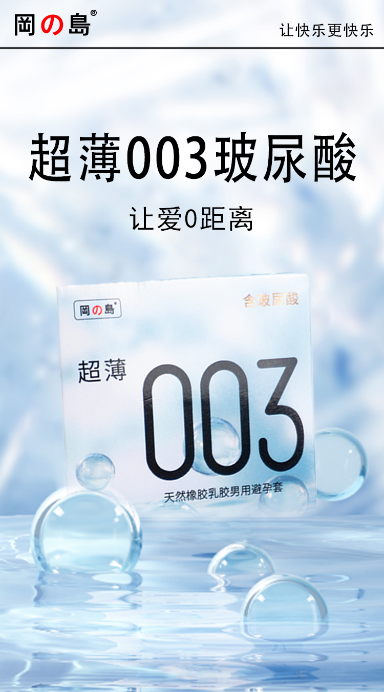 冈岛正品、避孕套、003单支装、体验装、超薄、玻尿酸、男用安全套
