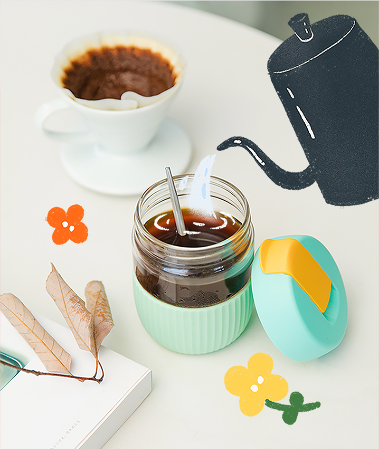 KKF 玻璃水杯 泡茶杯 耐高温 咖啡杯 可爱 便携