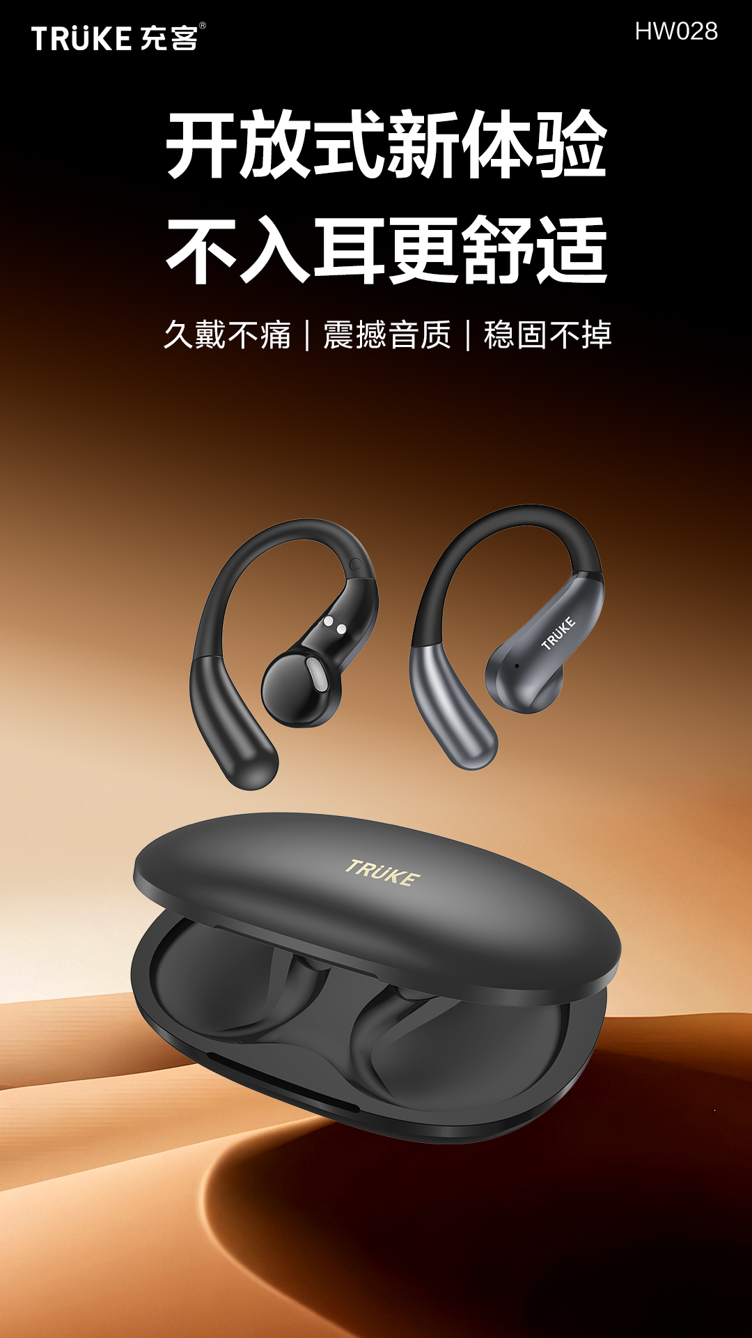 充客HW028长续航挂耳式蓝牙耳机2025新款无线降噪开放式运动耳机