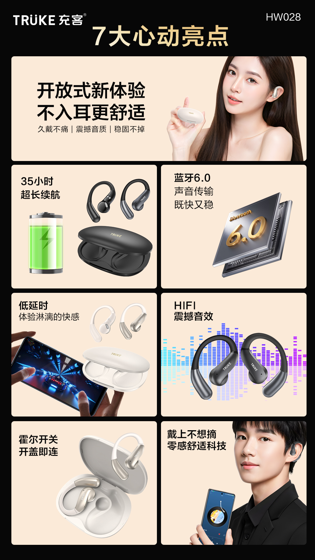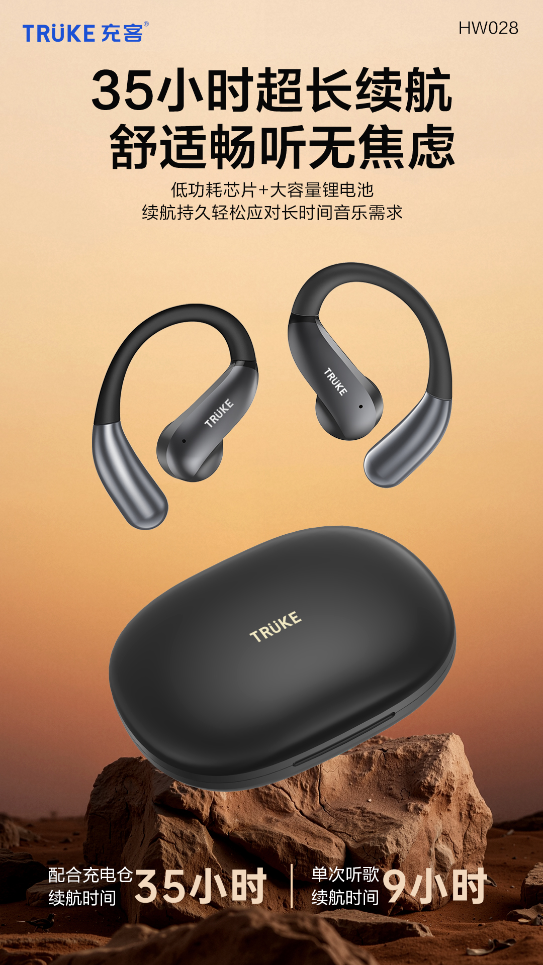 充客HW028、长续航、挂耳式、蓝牙耳机、2025新款、无线降噪、运动耳机