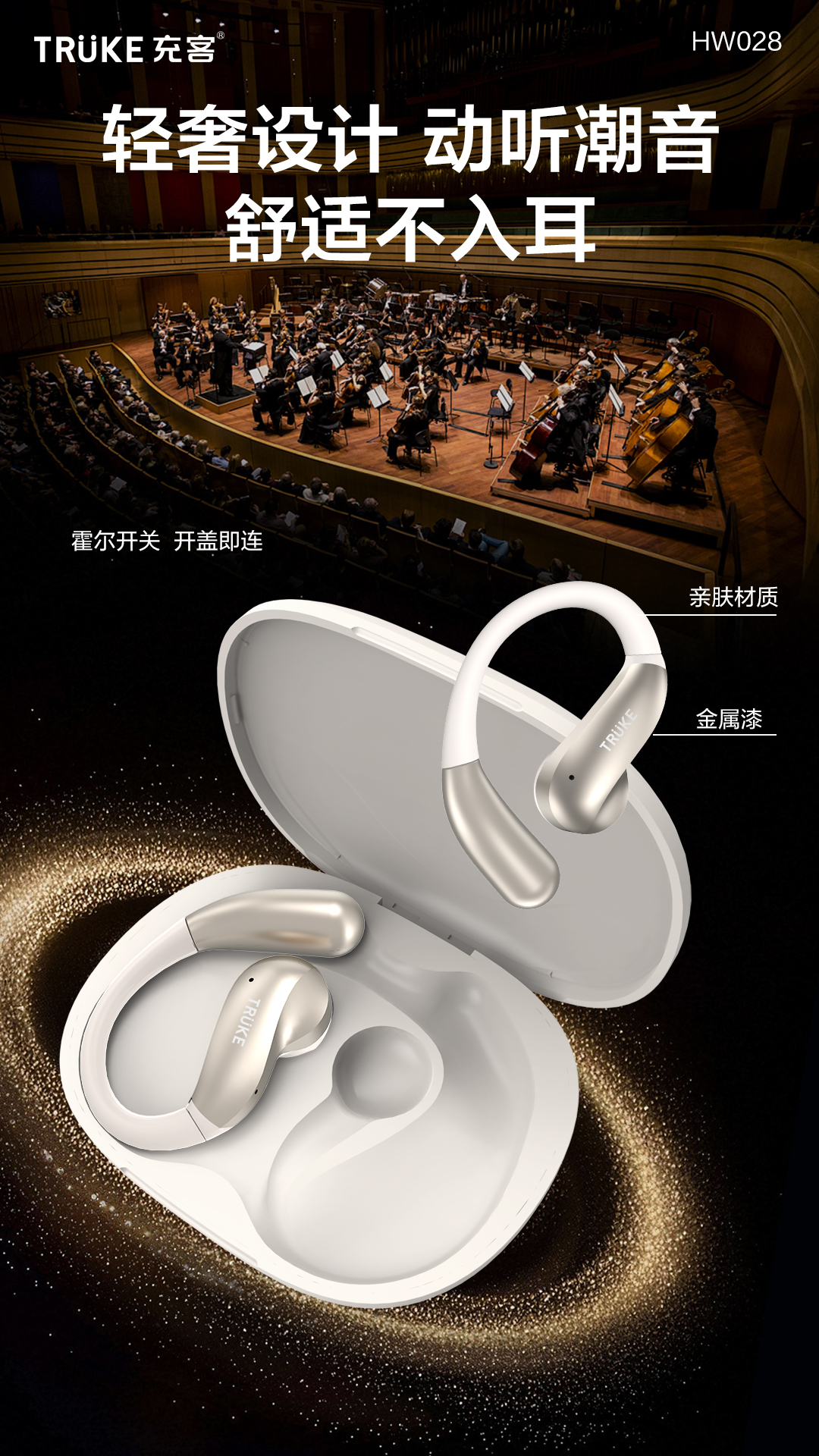 “ 充客HW028作为2025新款挂耳式蓝牙耳机,专为运动爱好者打造。它具备长续航能力,让你无需频繁充电,尽情享受音乐。无线降噪功能强大,能有效隔绝外界噪音,带来纯净音质。开放式设计贴合耳部,佩戴舒适稳固,运动时也不易掉落。无论是跑步、健身还是日常出行,它都是你的绝佳音乐伴侣。