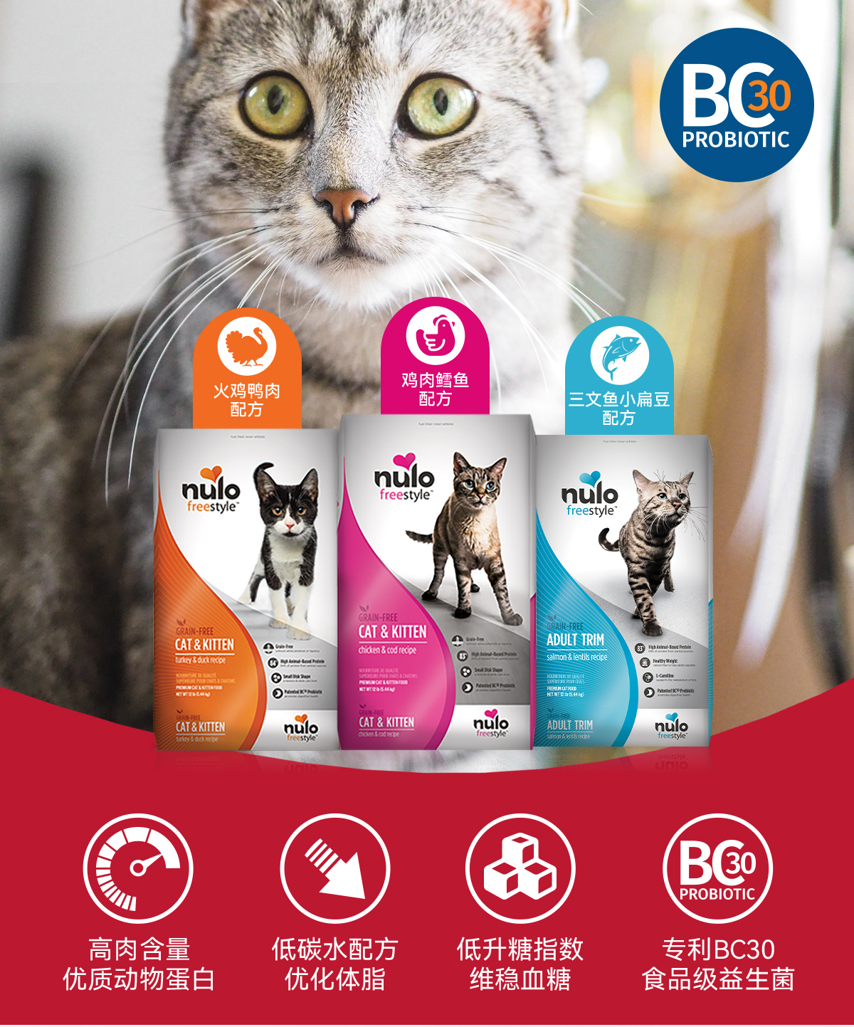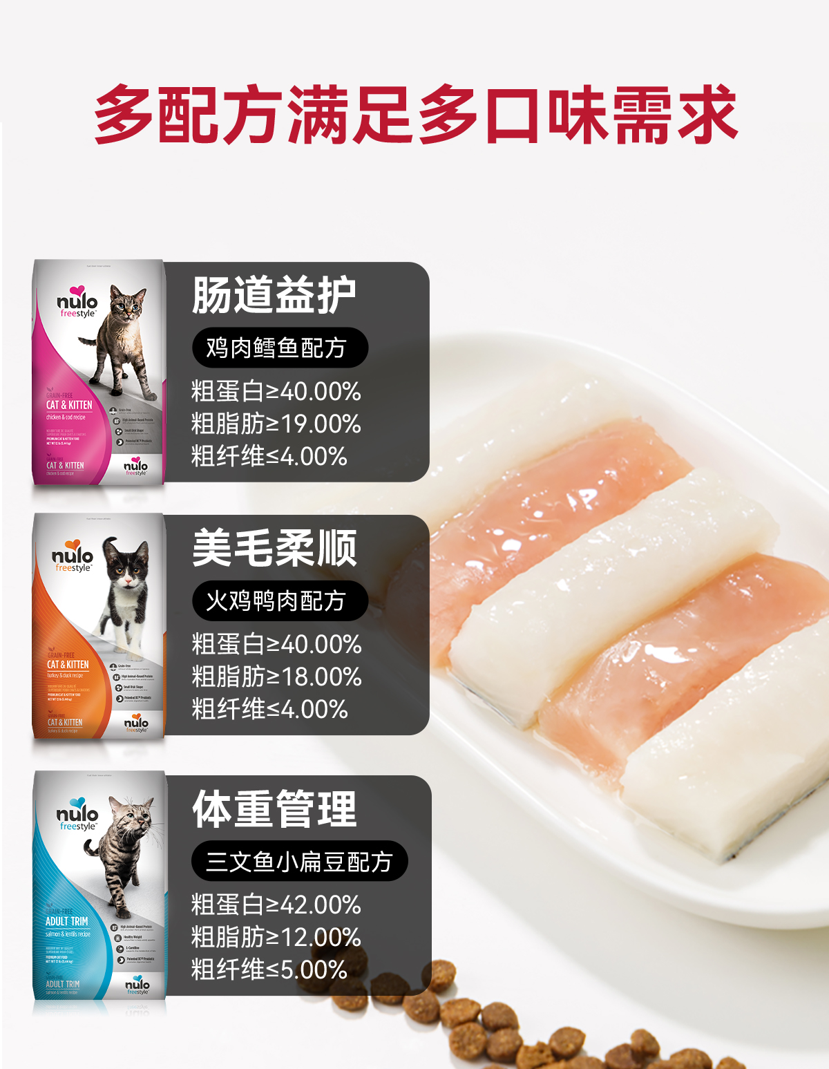 Nulo诺乐、进口猫粮、低敏、高蛋白、益生菌、肠胃护理、试吃体验装