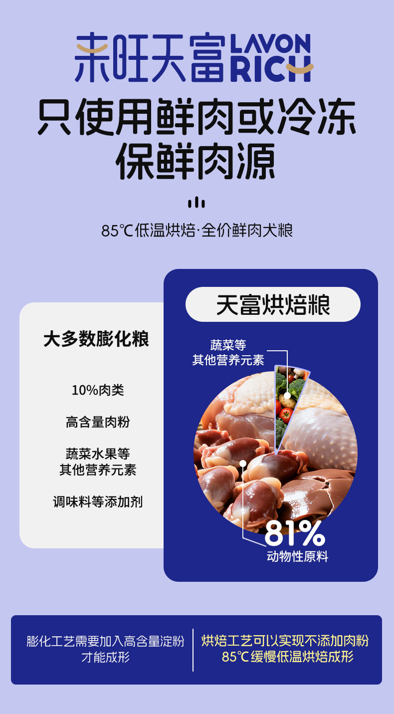 来旺天富 低温烘焙犬粮 小型犬 中大型犬 幼犬成犬 鸡肉鲜肉全价
