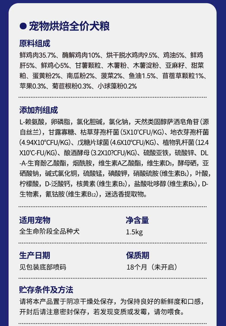 来旺天富低温烘焙犬粮狗粮小型犬中大型犬幼犬成犬鸡肉鲜肉全价
