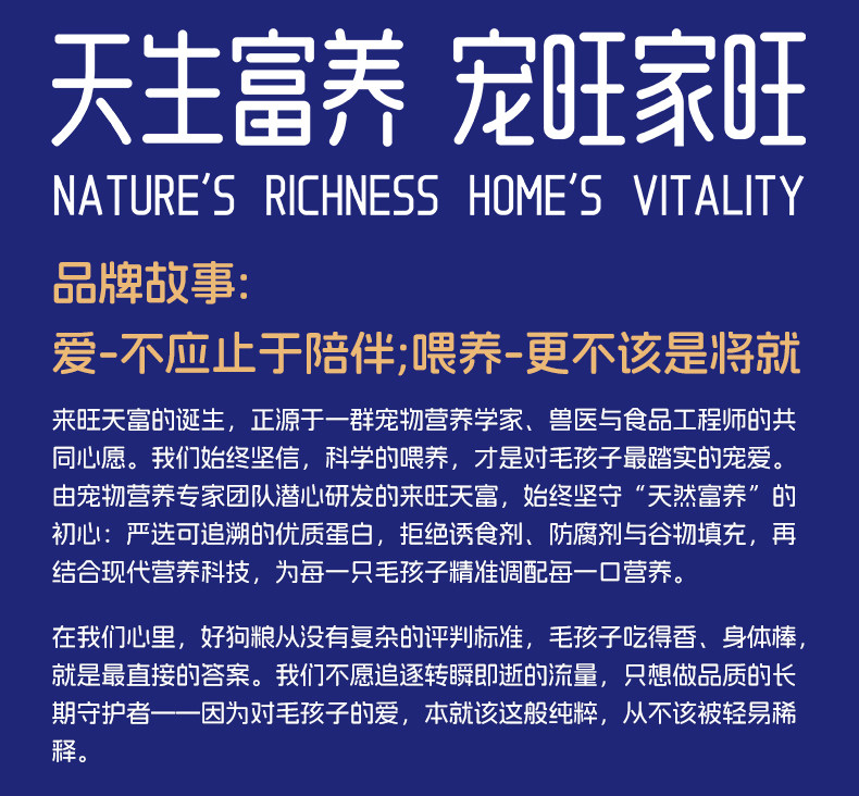 “ 来旺天富低温烘焙犬粮,专为不同体型犬只设计,无论是小型犬还是中大型犬,幼犬还是成犬都能适用。采用低温烘焙工艺,最大程度保留鸡肉鲜肉的营养与美味,全价配方满足狗狗成长所需各类营养。让狗狗吃得健康又开心,是铲屎官的优质之选。