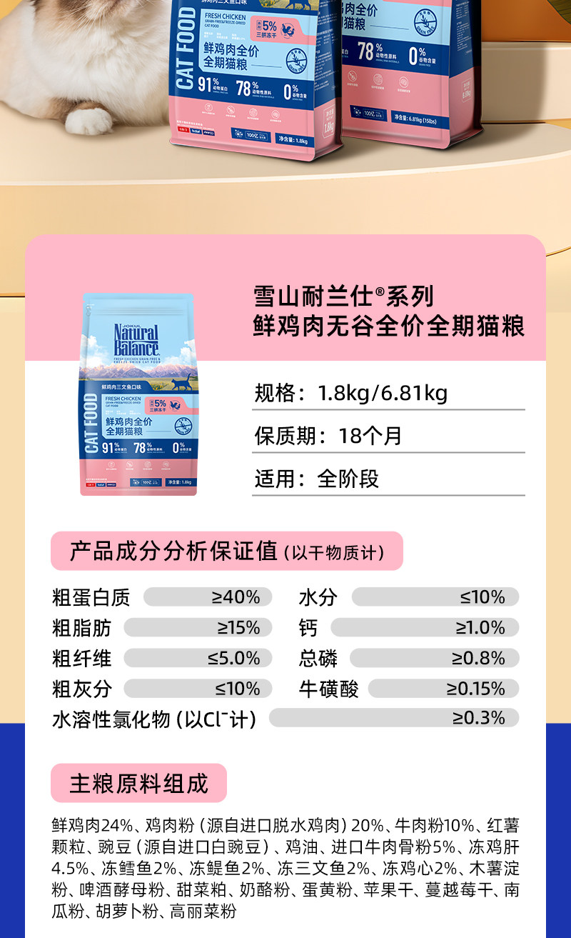 雪山鲜肉 生骨肉冻干猫粮 鲜鸡肉 无谷 幼成猫粮 全价全阶段