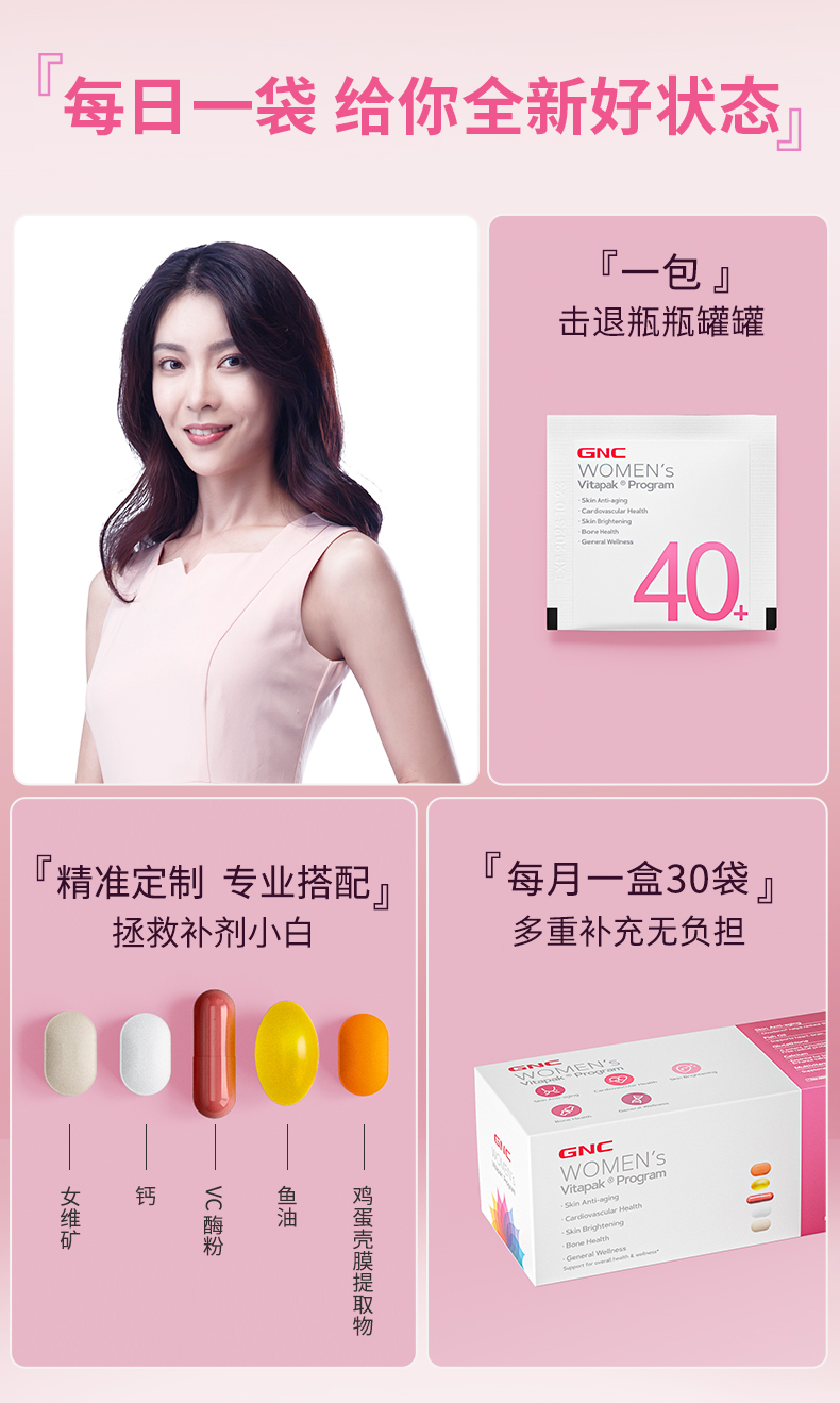 “ 【自营】GNC健安喜推出的这款营养包超实用!它打破性别局限,既适合女性也适合男性。富含女士多维维生素及多种营养素,能全面满足日常营养需求,助力维持身体良好状态。不管是忙碌的上班族,还是注重养生的中老年人,都能从中获取所需养分,为健康加分。
