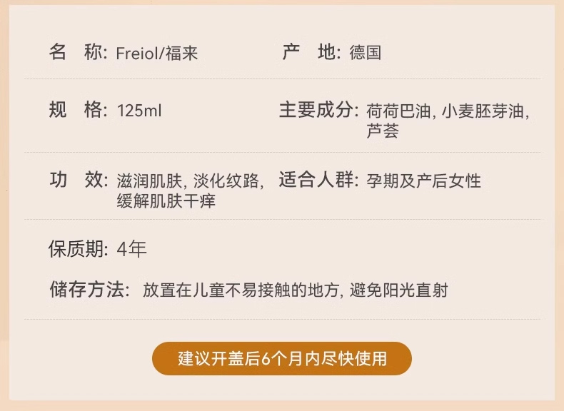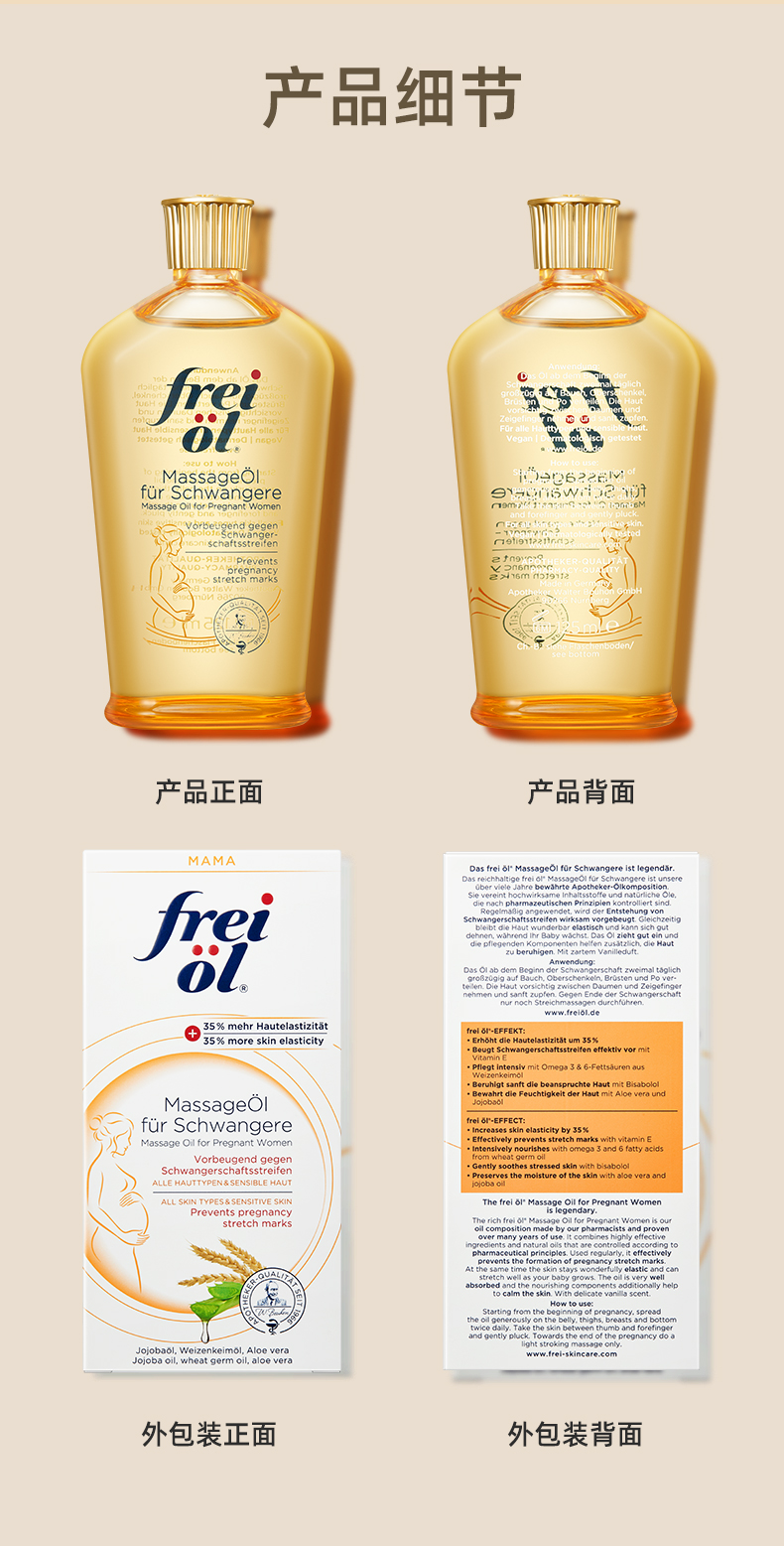 自营、freiol福来油、准孕妇、淡化防妊娠纹、精华油、按摩身体乳
