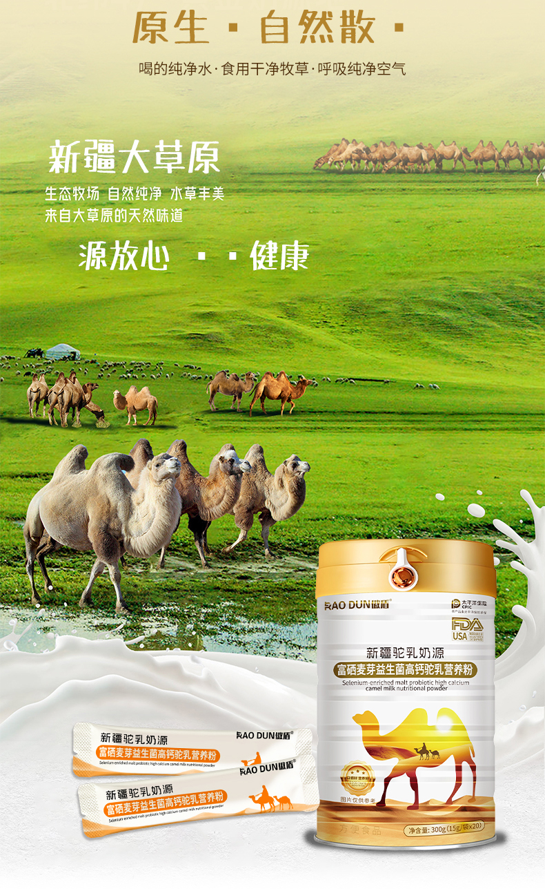 傲盾富硒麦芽益生菌高钙驼乳营养粉儿童驼乳蛋白粉成人蛋白质粉