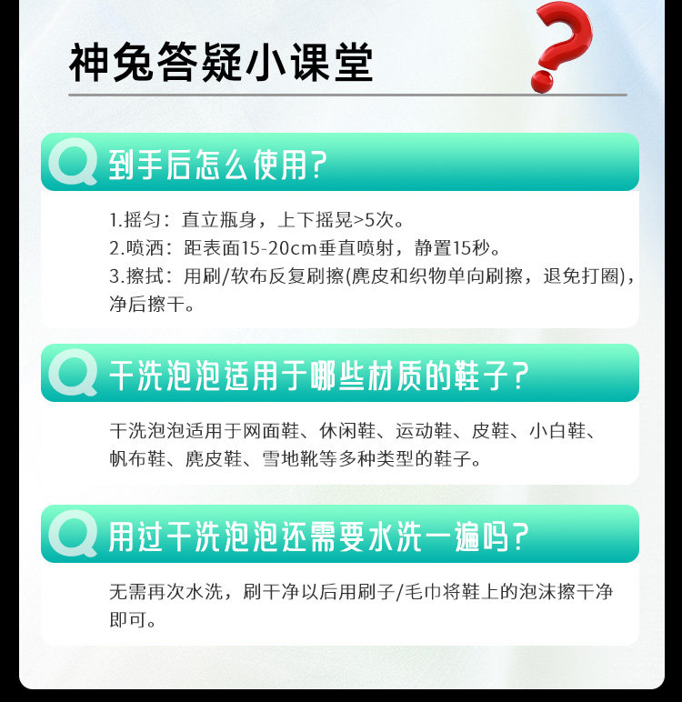 神兔、小白鞋清洗剂、球鞋去黄、刷鞋泡沫、喷头清洁剂、免水洗