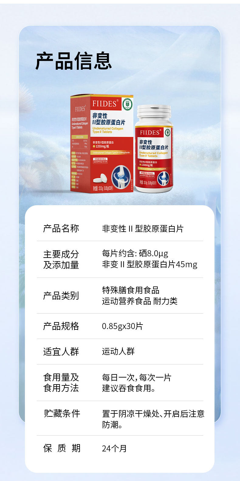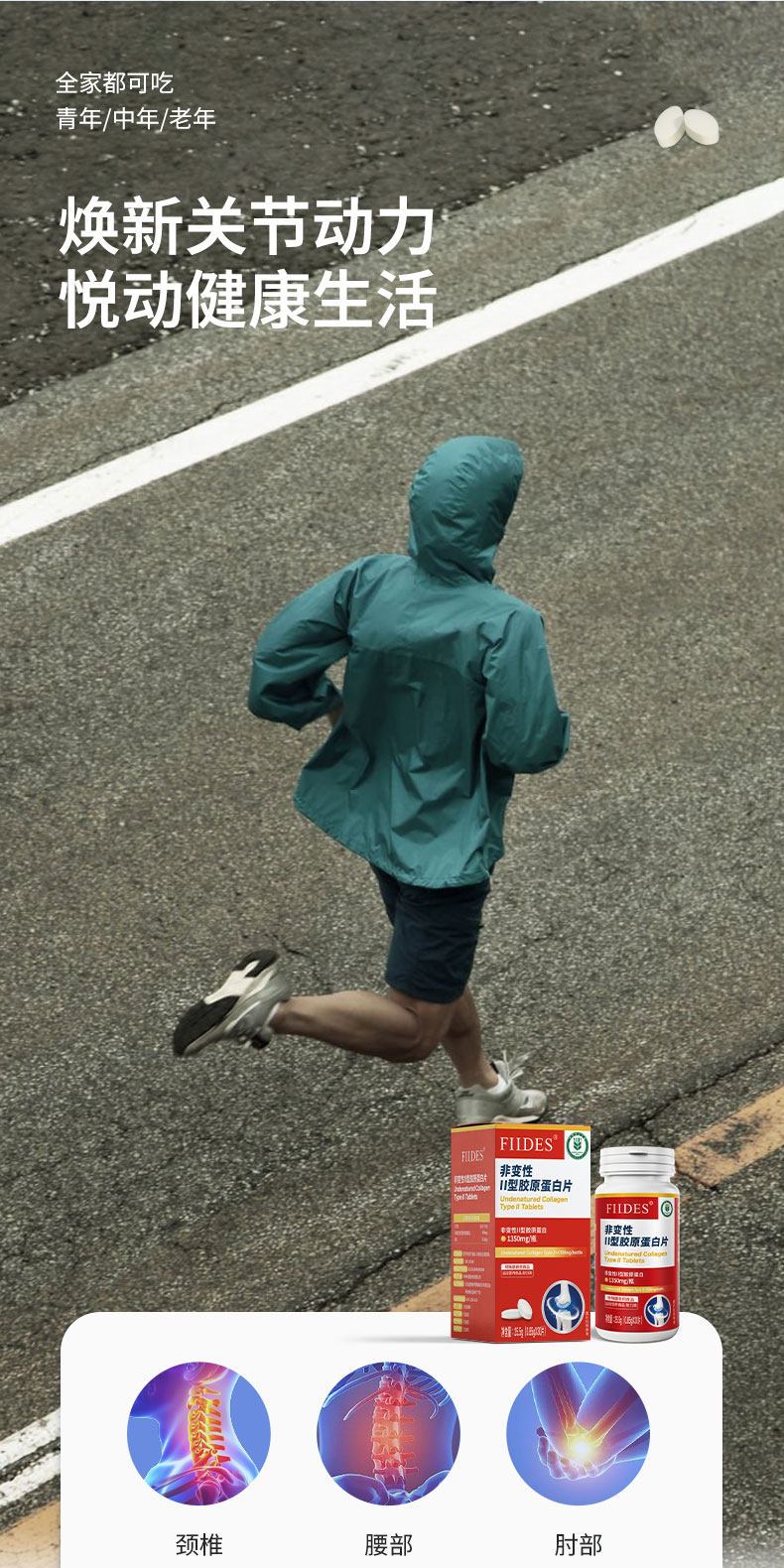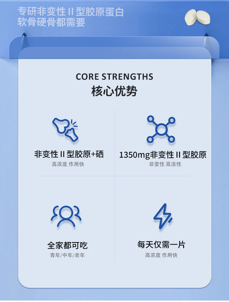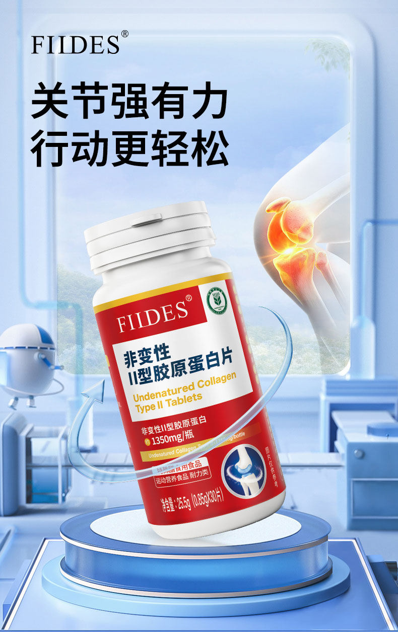 关节不适就用它FIIDES非变性II型胶原蛋白片高浓度30片成人中老年