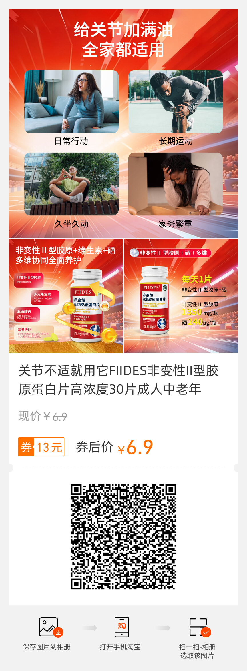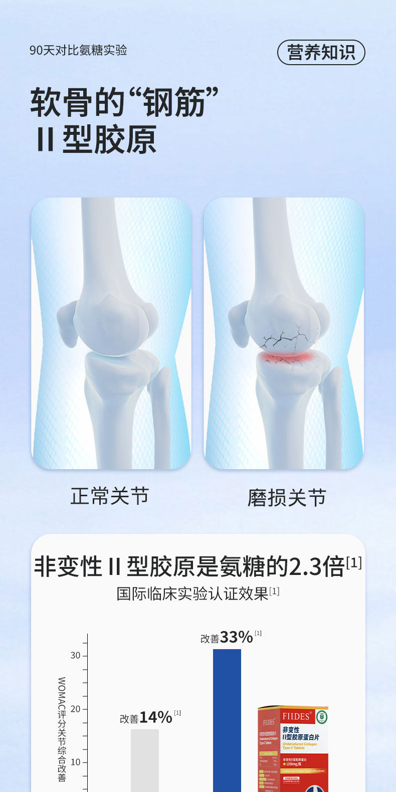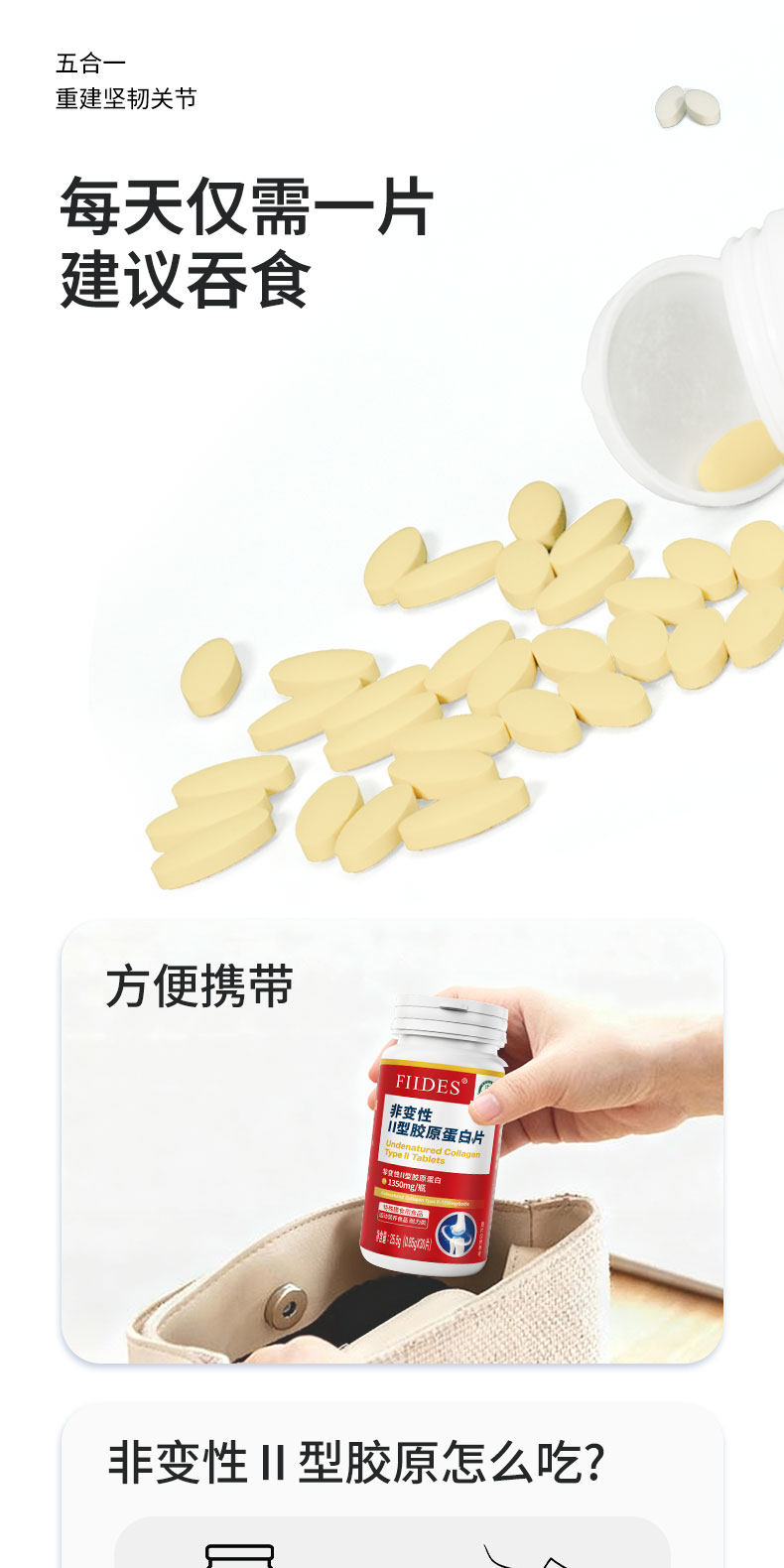 关节不适就用它FIIDES非变性II型胶原蛋白片高浓度30片成人中老年