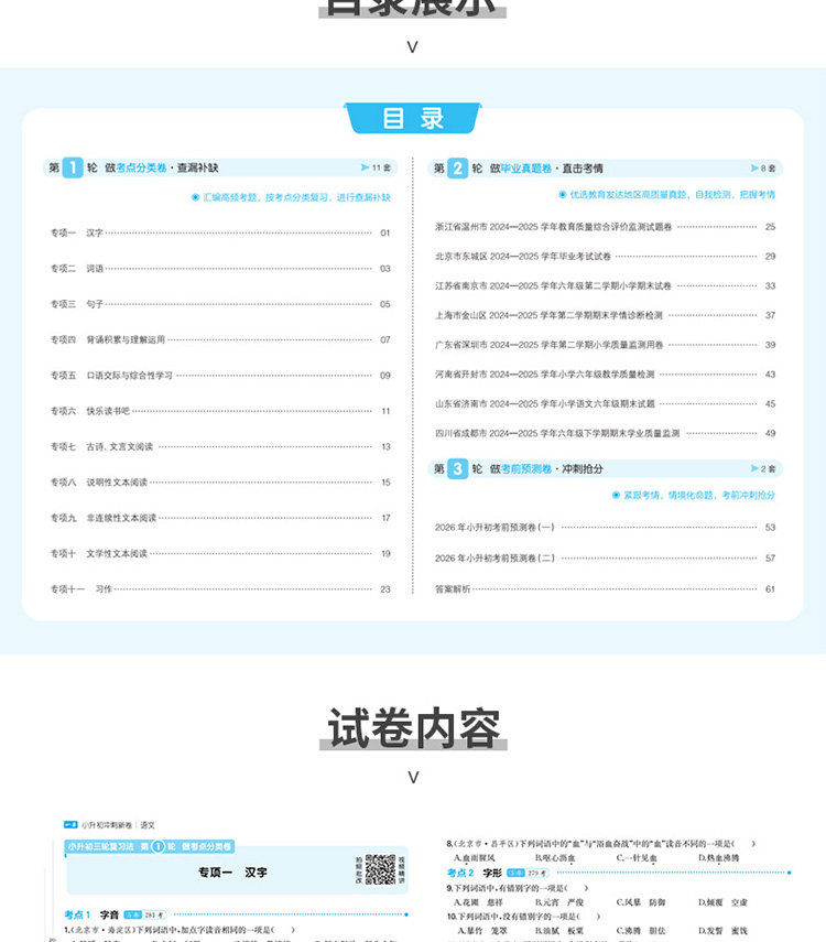 小升初冲刺、分类新卷、三步分类练、真题、语文数学英语、名校冲刺