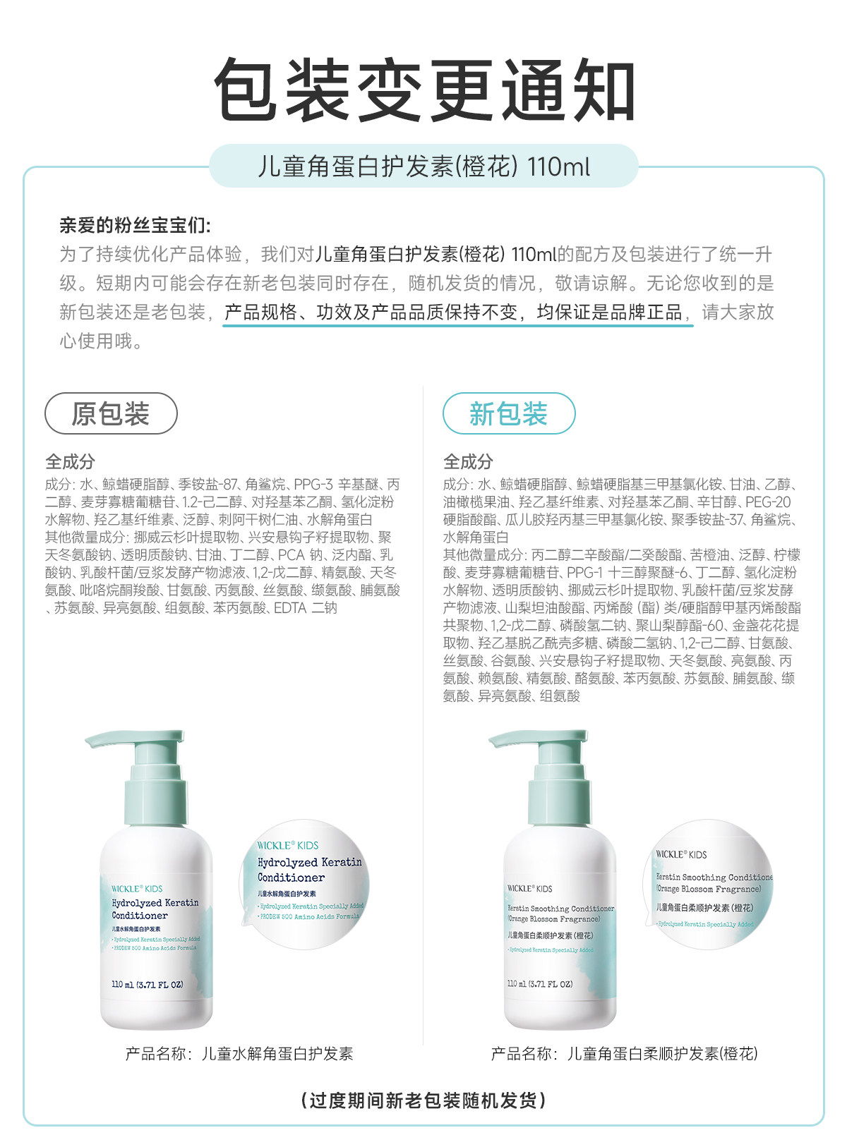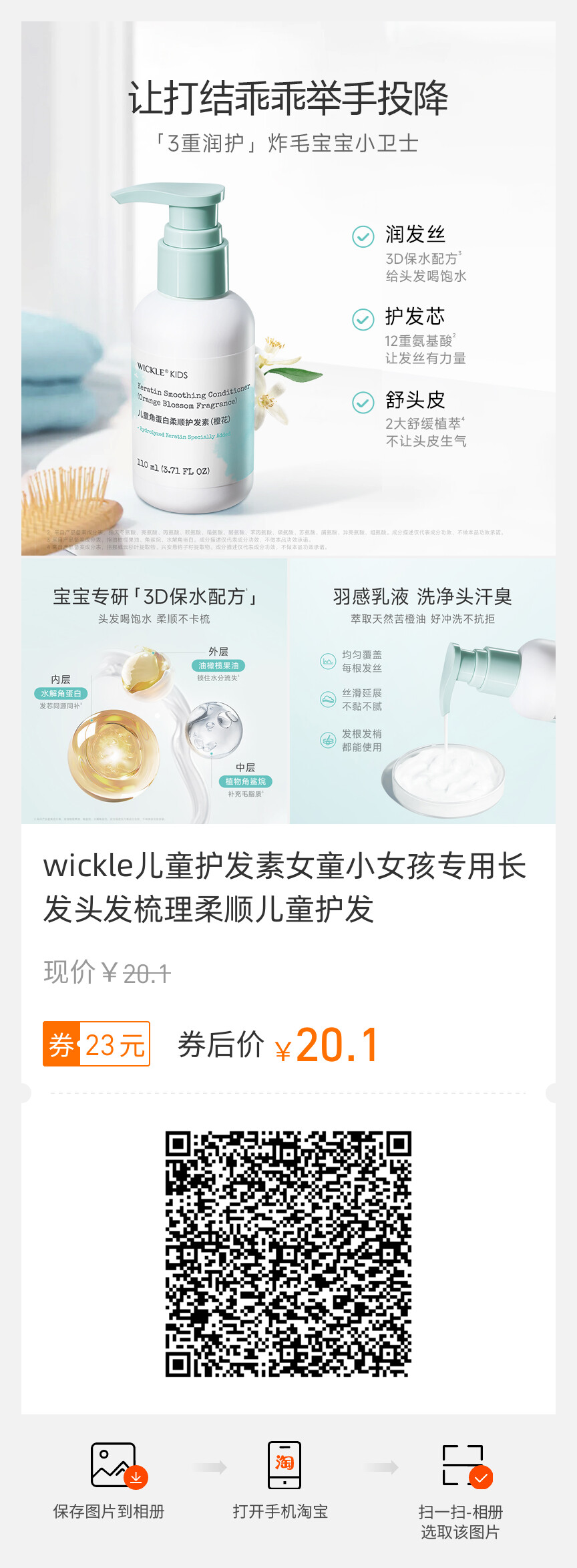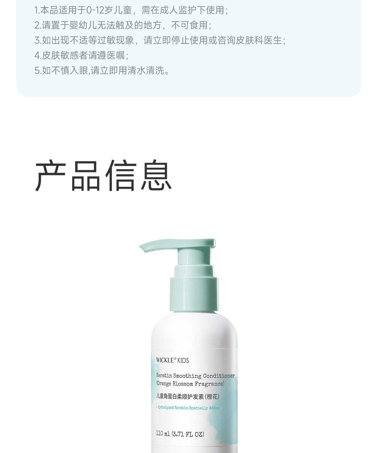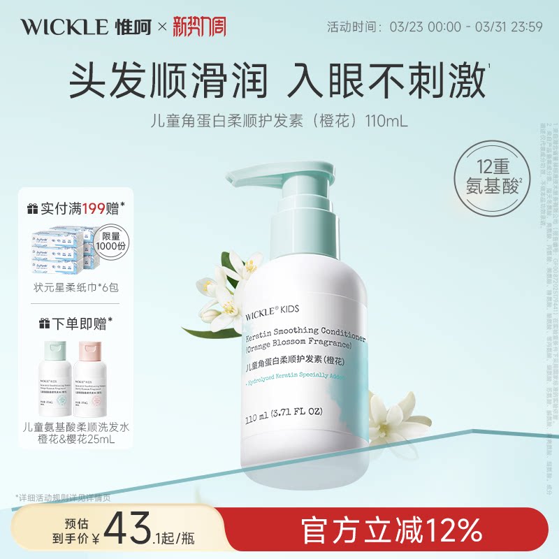 wickle儿童护发素女童小女孩专用长发头发梳理柔顺儿童护发