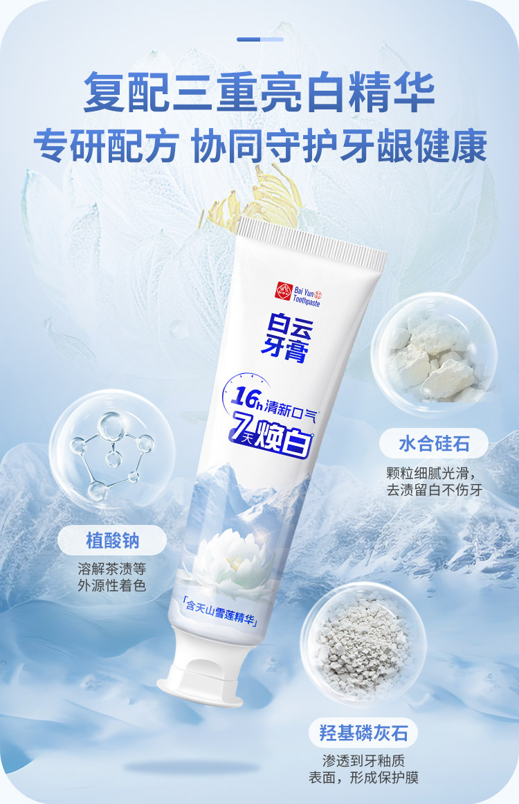白云山牙膏、官方正品、广药、美白去黄、去口臭、清新口气