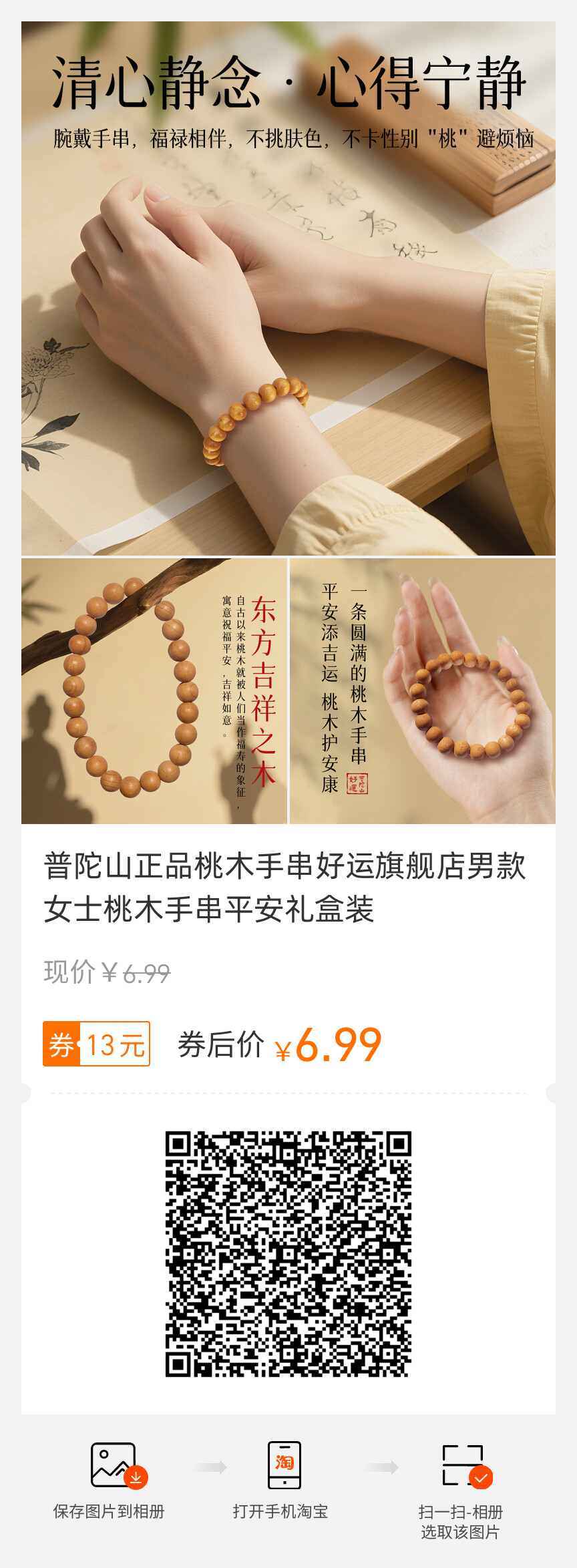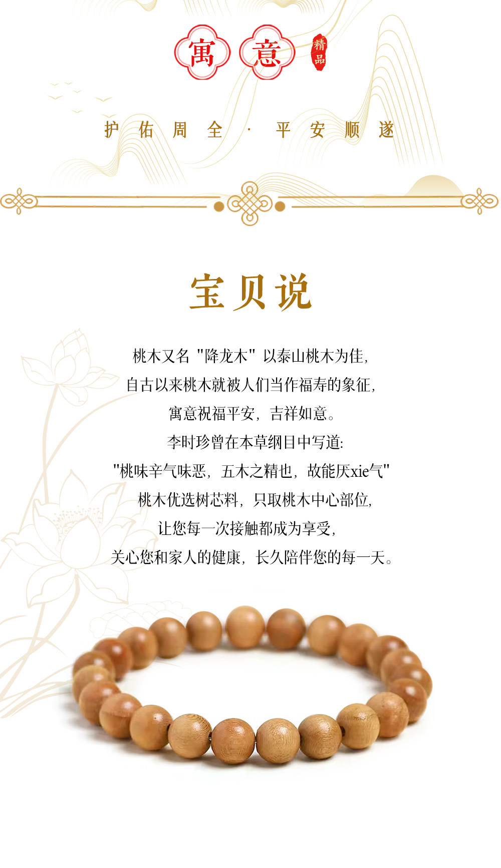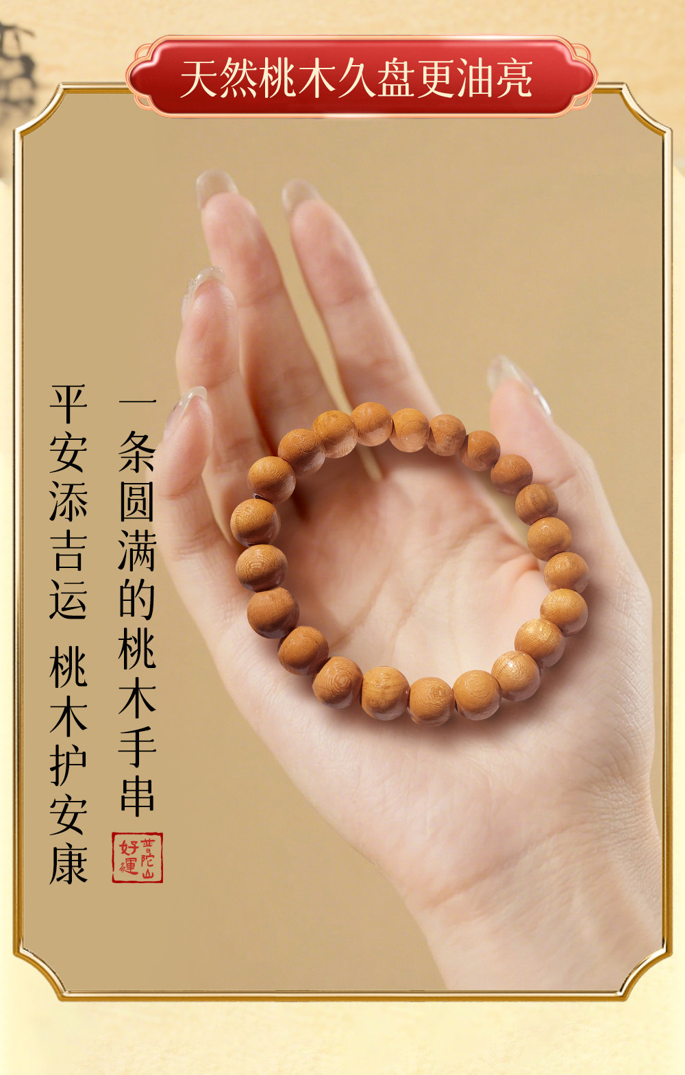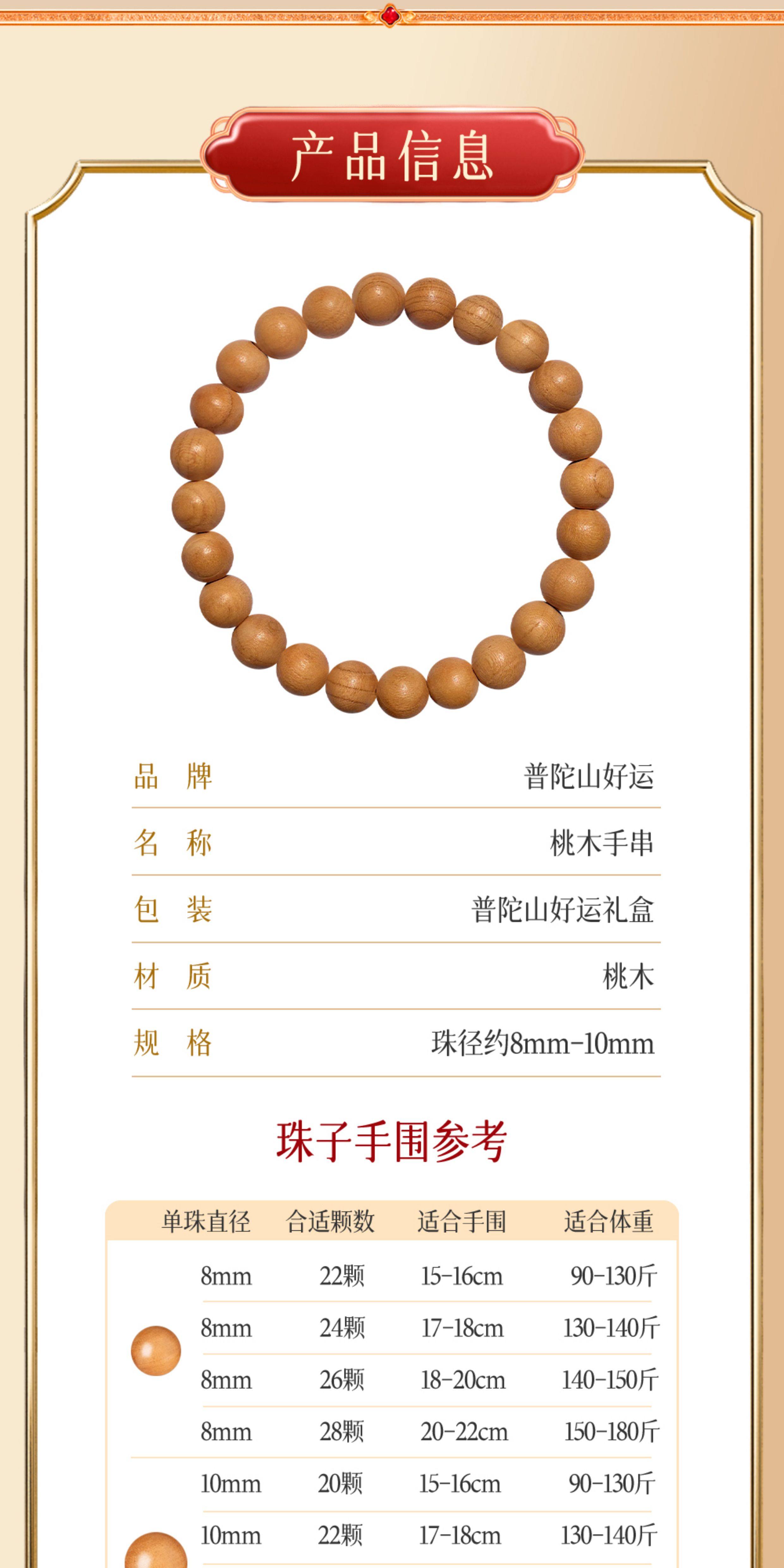 普陀山、正品、桃木手串、男女款、平安、礼盒装