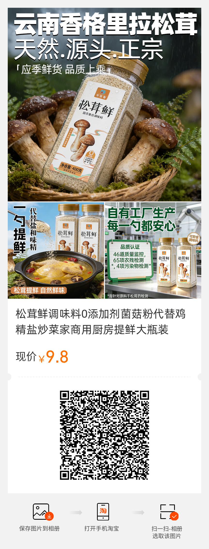 松茸鲜调味料 0添加剂 菌菇粉 代替鸡精盐 炒菜提鲜 大瓶装 家商用厨房