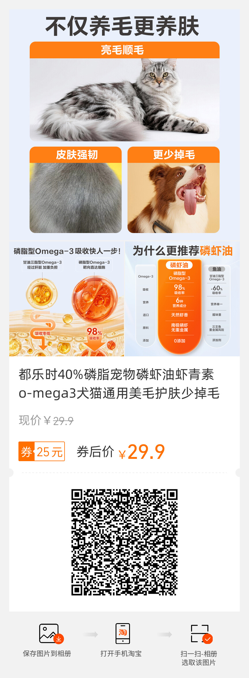 都乐时40%磷脂宠物磷虾油虾青素o-mega3犬猫通用美毛护肤少掉毛