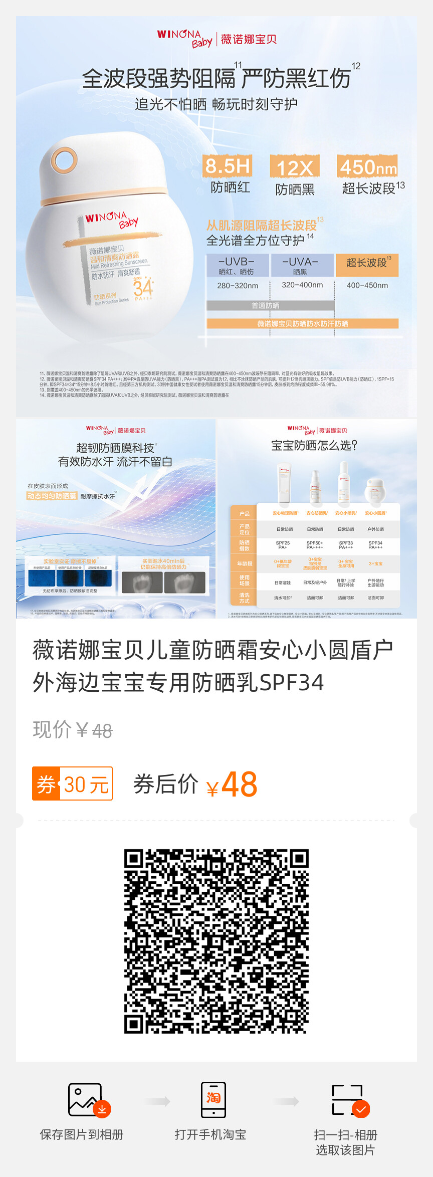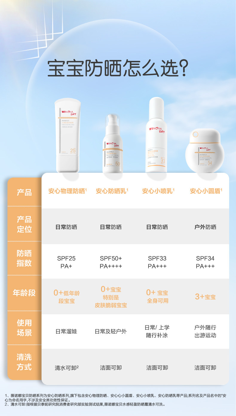 薇诺娜宝贝儿童防晒霜安心小圆盾户外海边宝宝专用防晒乳SPF34