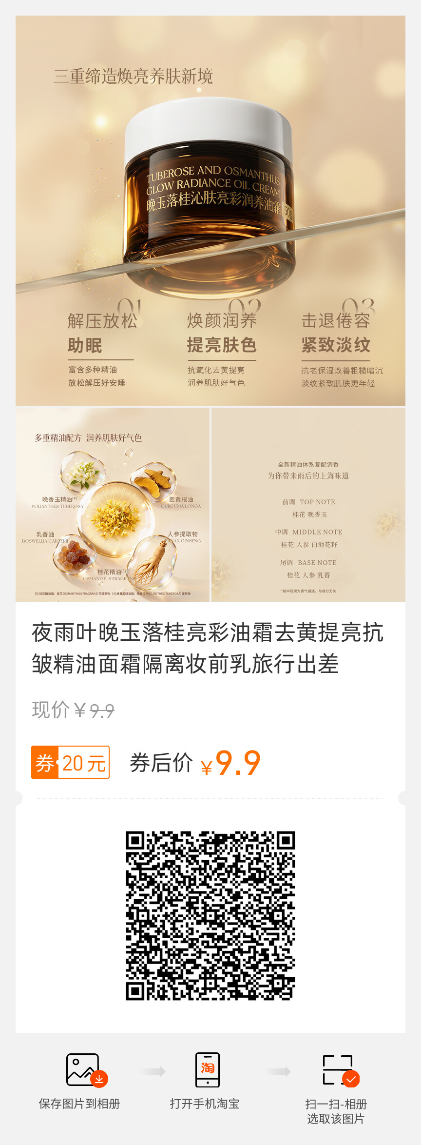 夜雨叶 晚玉落桂 亮彩油霜 去黄提亮 抗皱精油 妆前乳