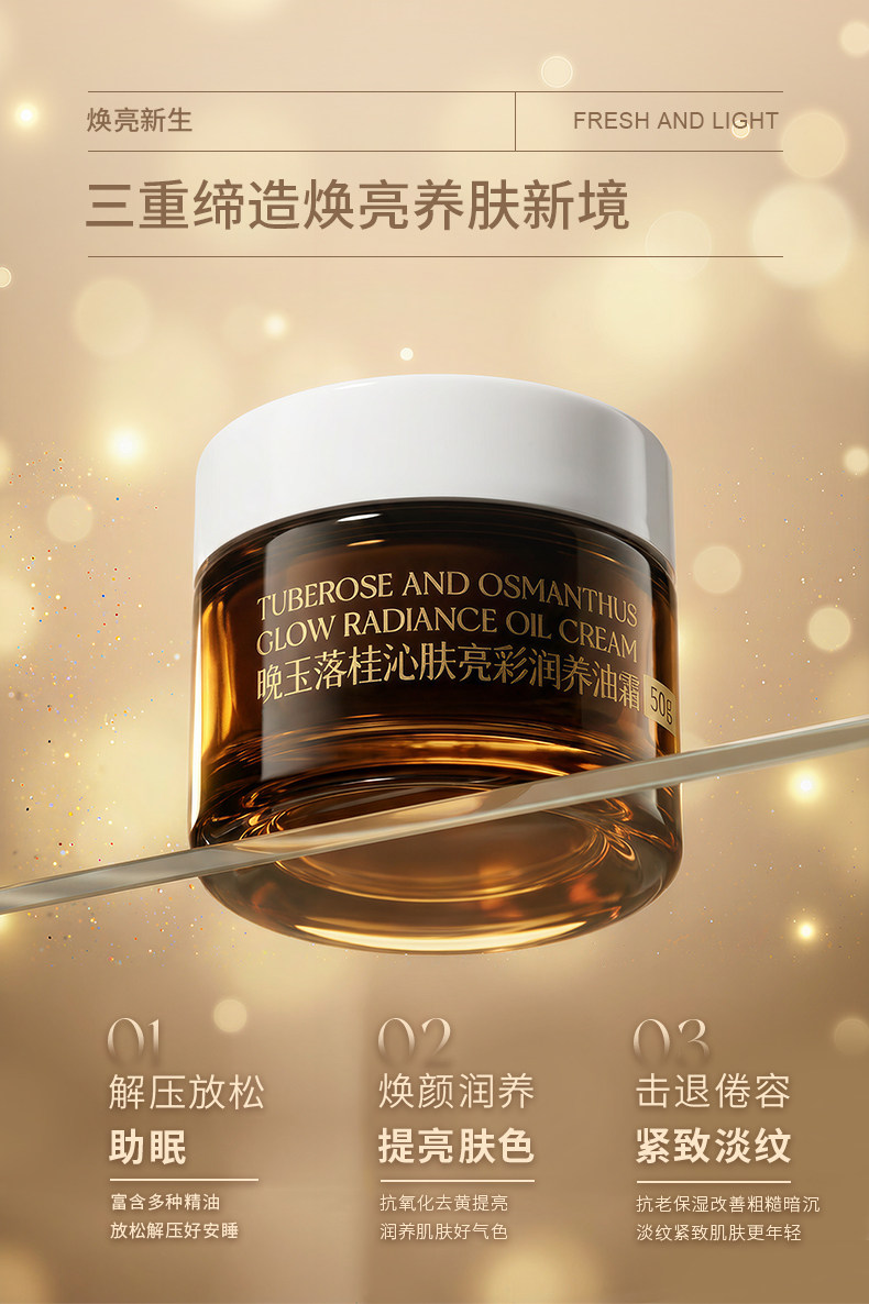 夜雨叶晚玉落桂亮彩油霜去黄提亮抗皱精油面霜隔离妆前乳旅行出差