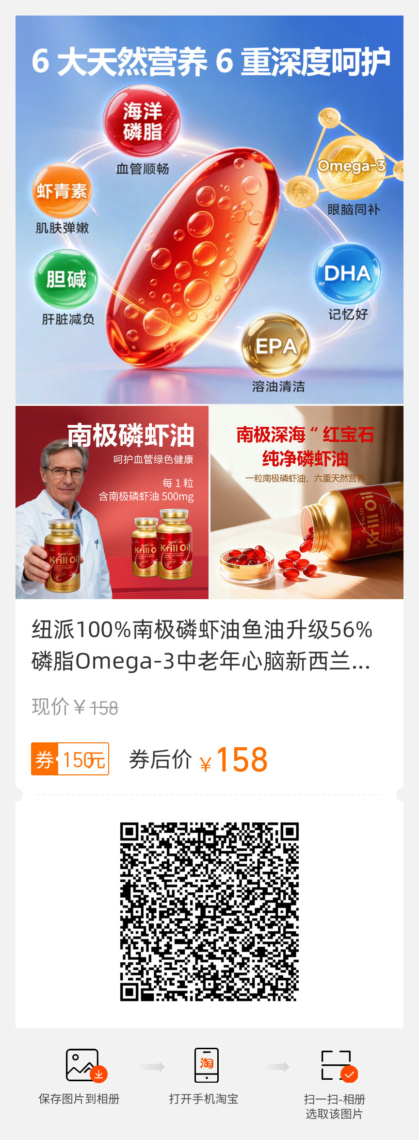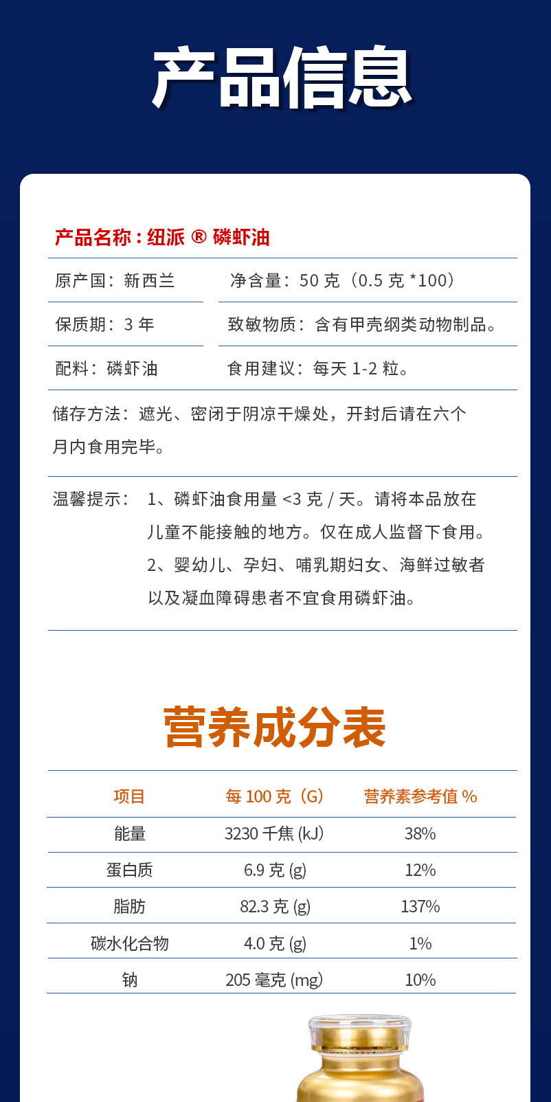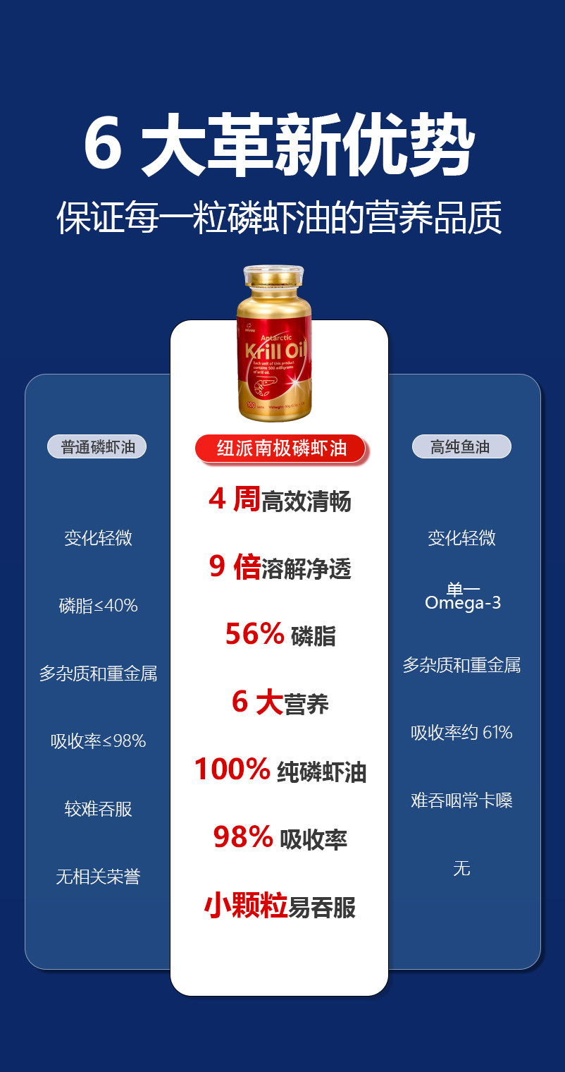 纽派100%南极磷虾油鱼油升级56%磷脂Omega-3中老年心脑新西兰进口