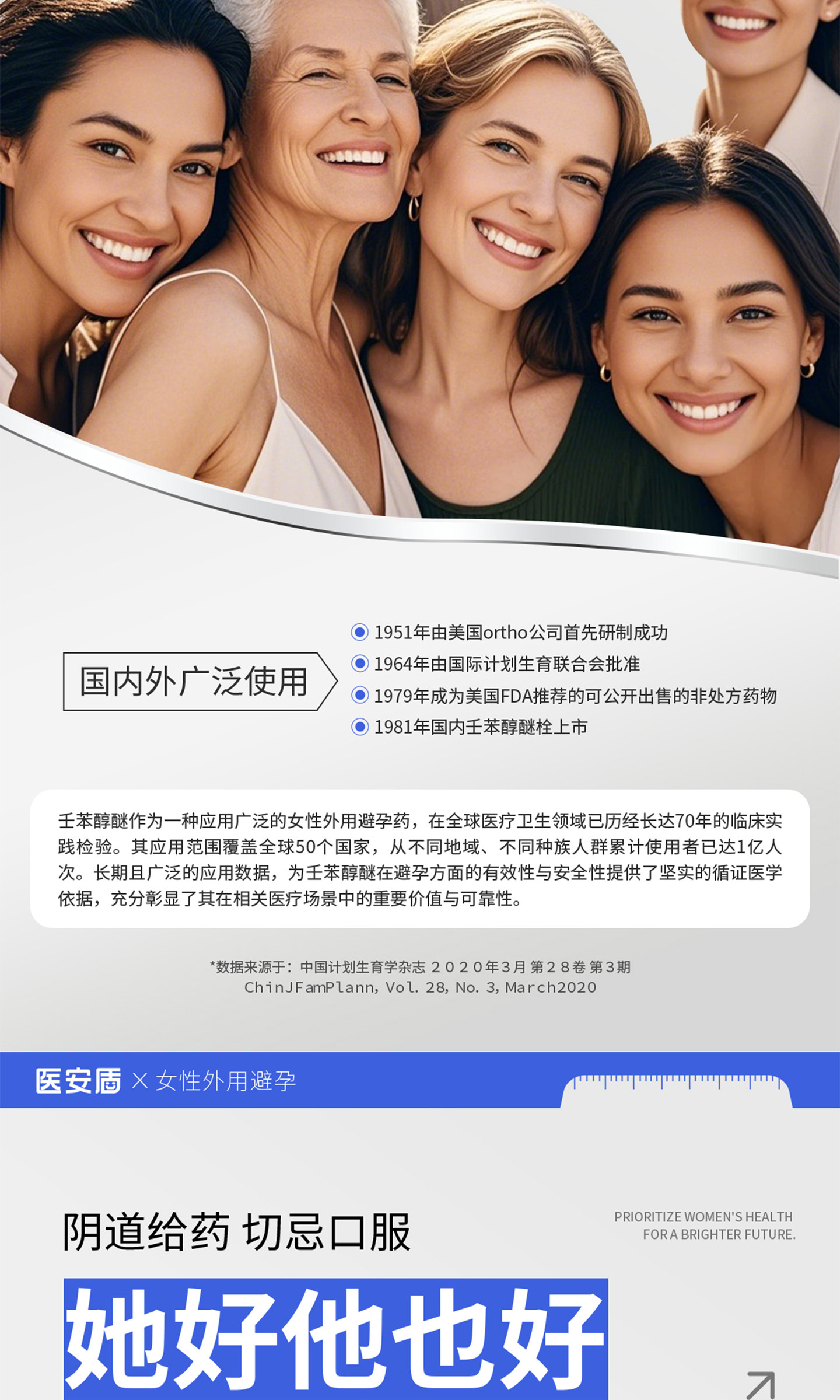 医安盾壬苯醇醚栓 100mg*4粒/盒外用避孕药无套零距离液体避孕套