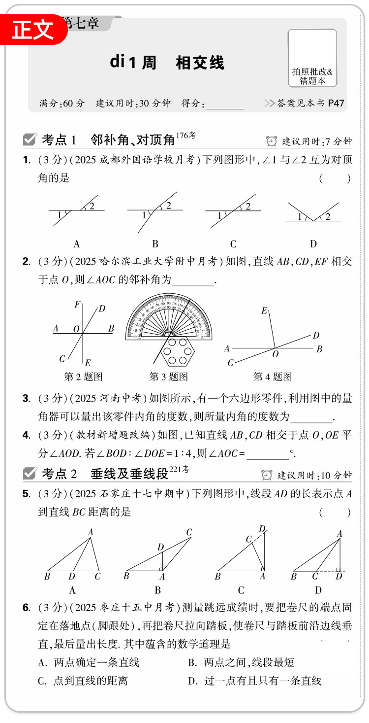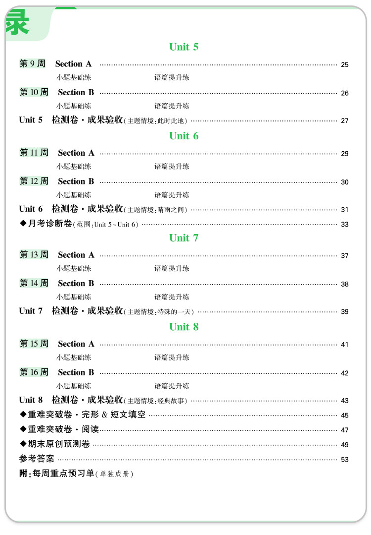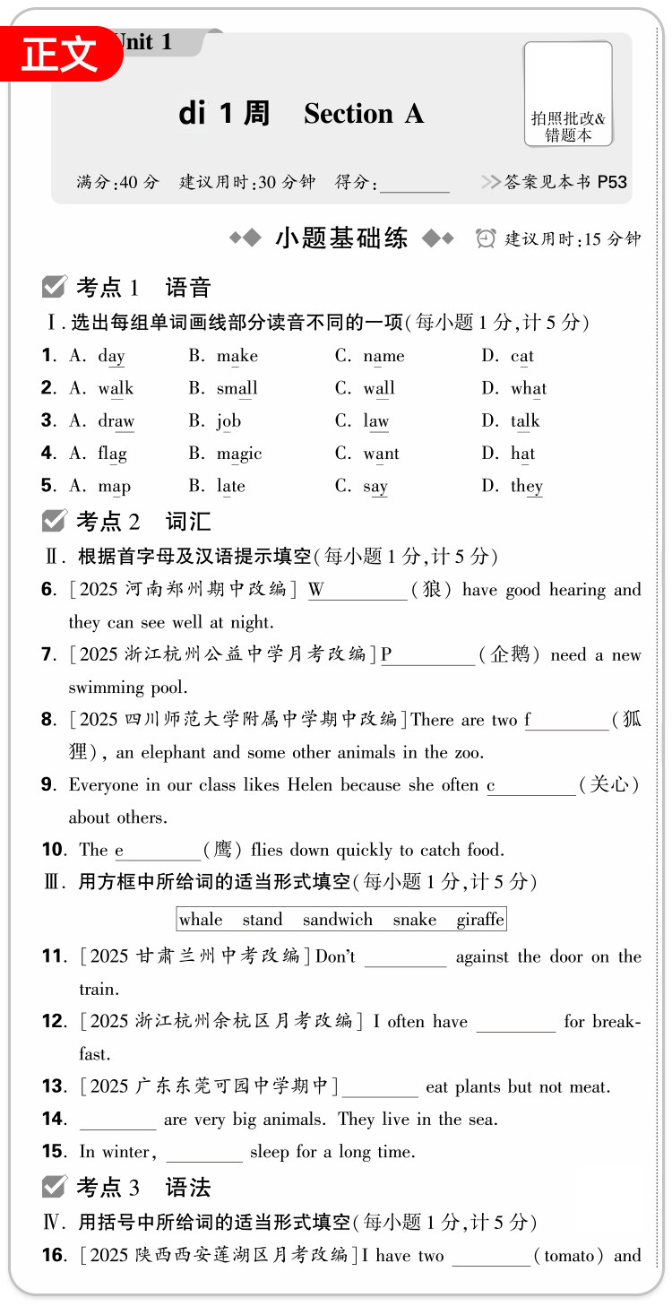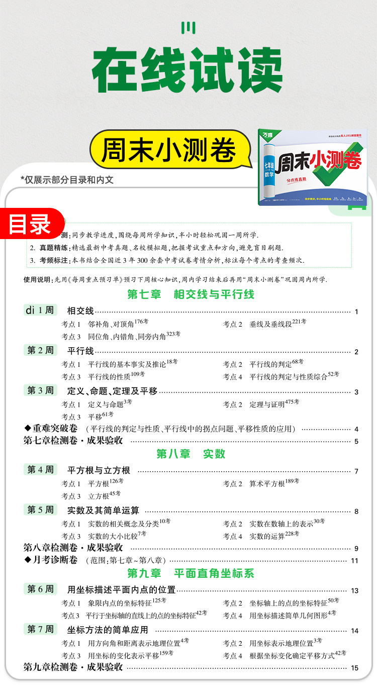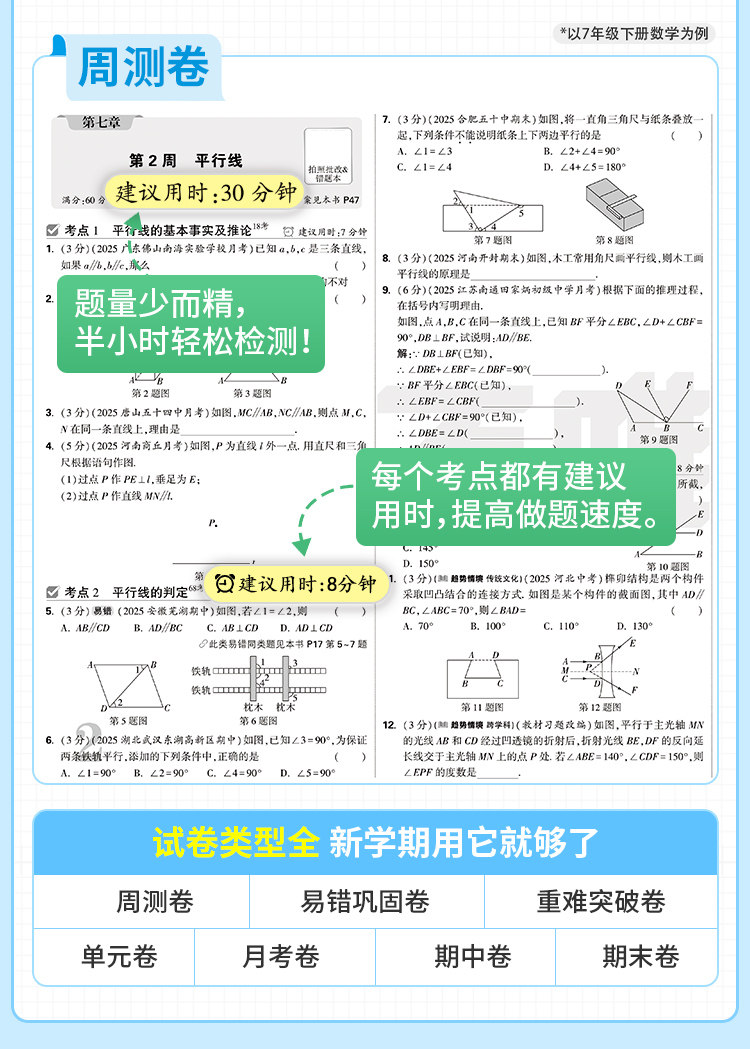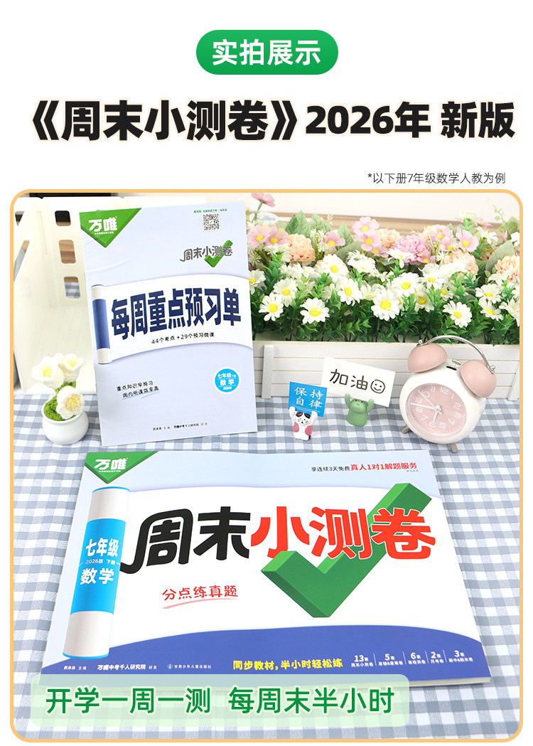 2026新版、万唯周末半小时小测卷、初中七八年级、同步教材、周测单元测