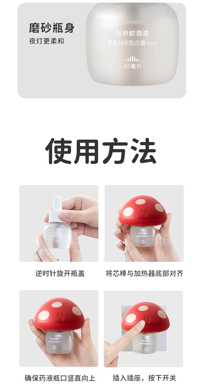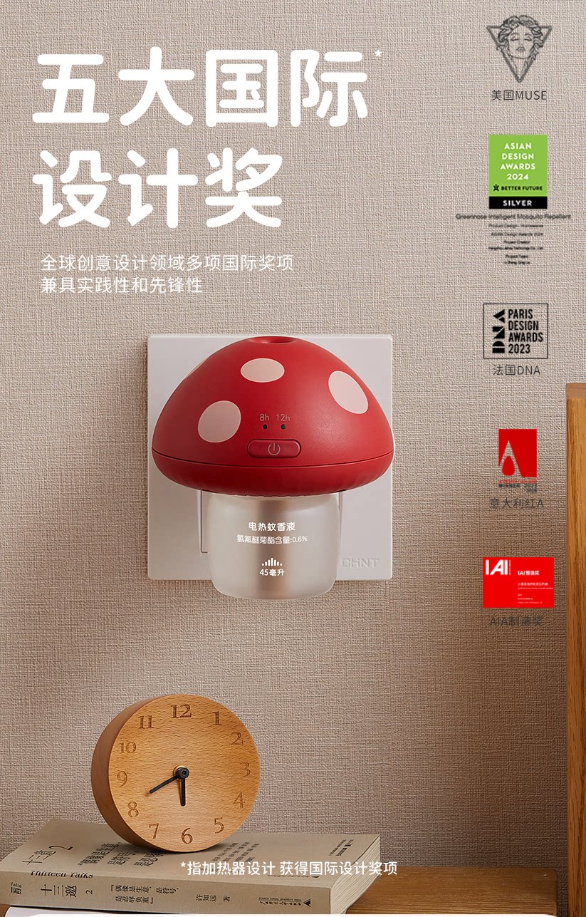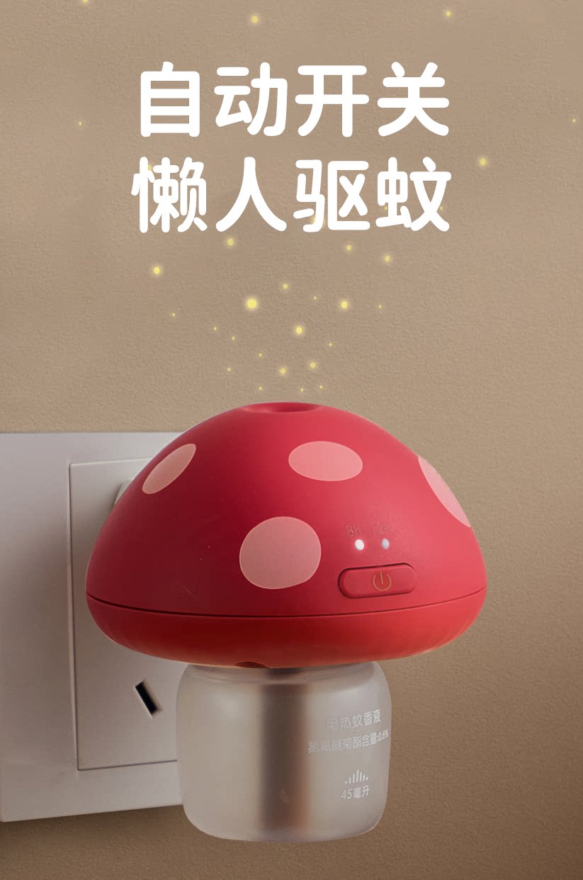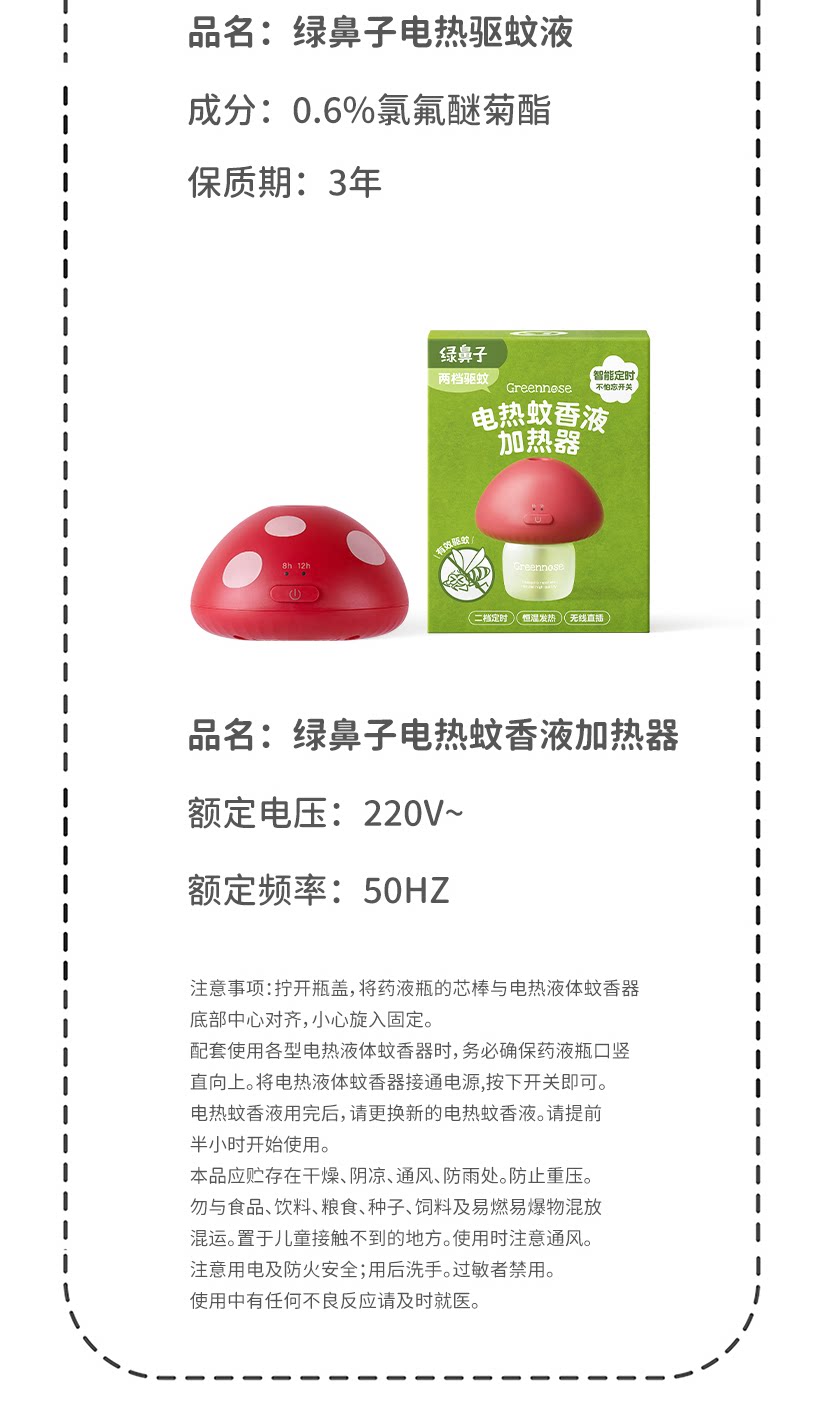 【清仓】绿鼻子蘑菇驱蚊器理想屋联名蚊香液无烟无味1器4液白红