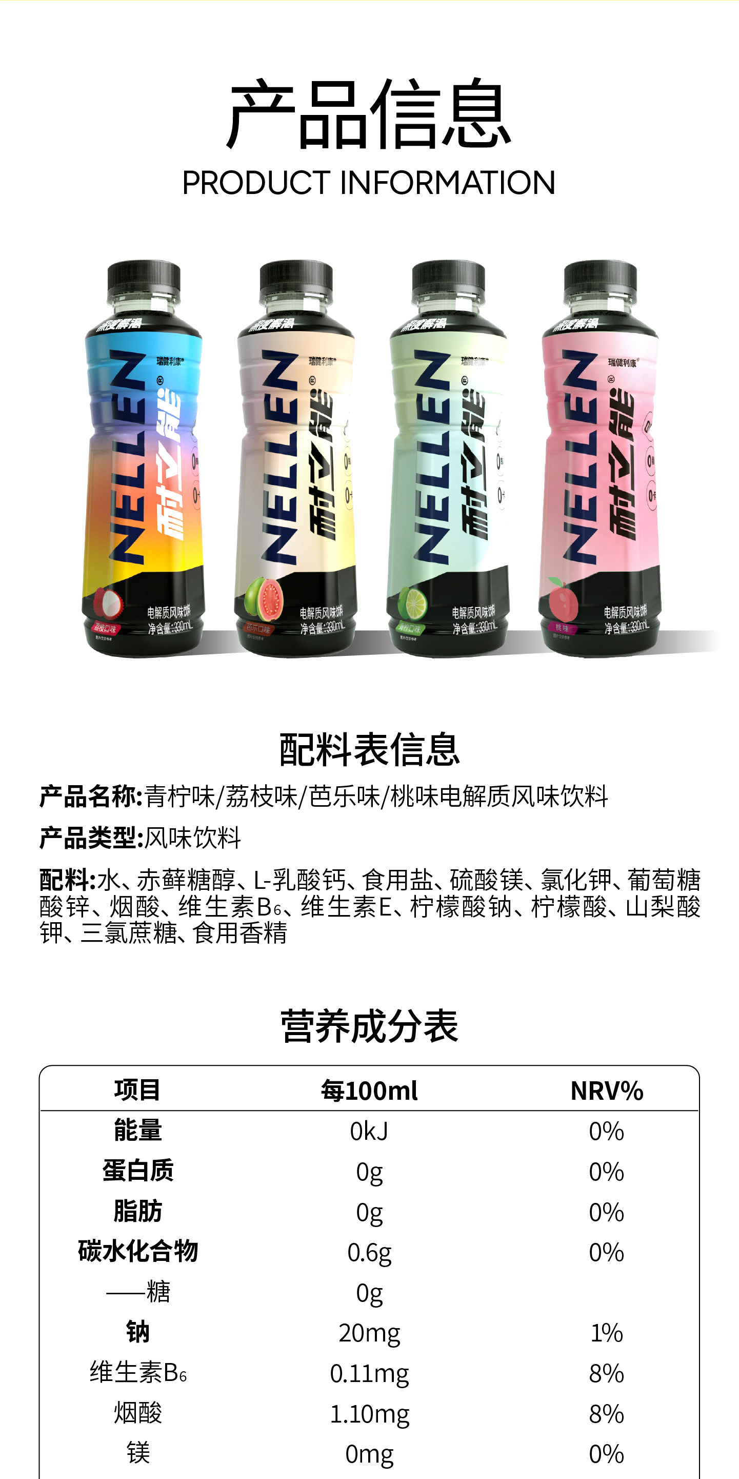 耐立能、电解质水饮料、跑步健身、0糖0卡、多口味、便携装