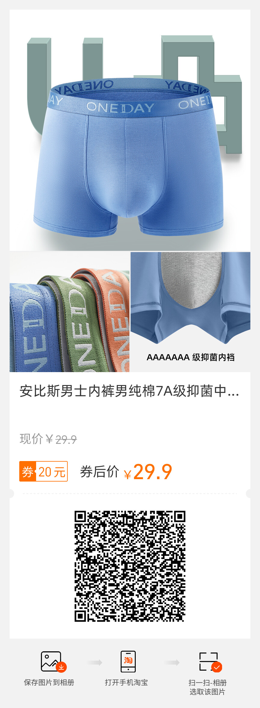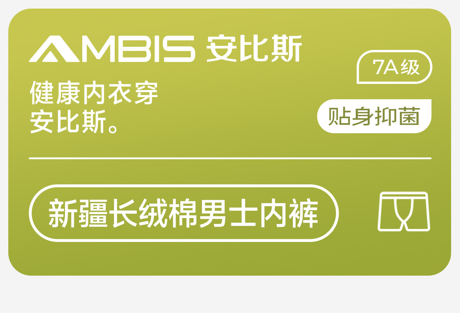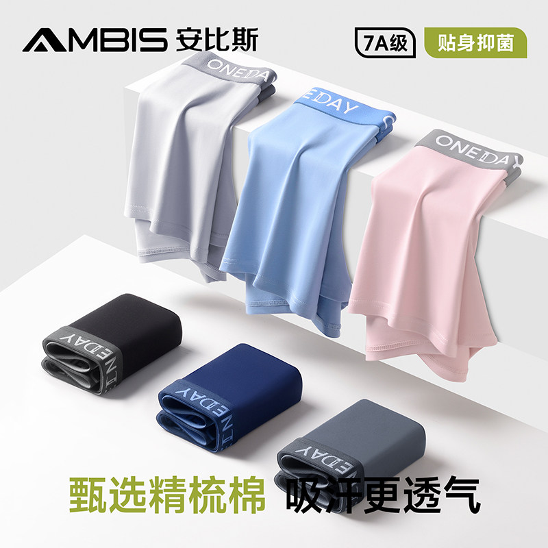 安比斯、男士内裤、纯棉、7A级抑菌、中腰透气、四角裤