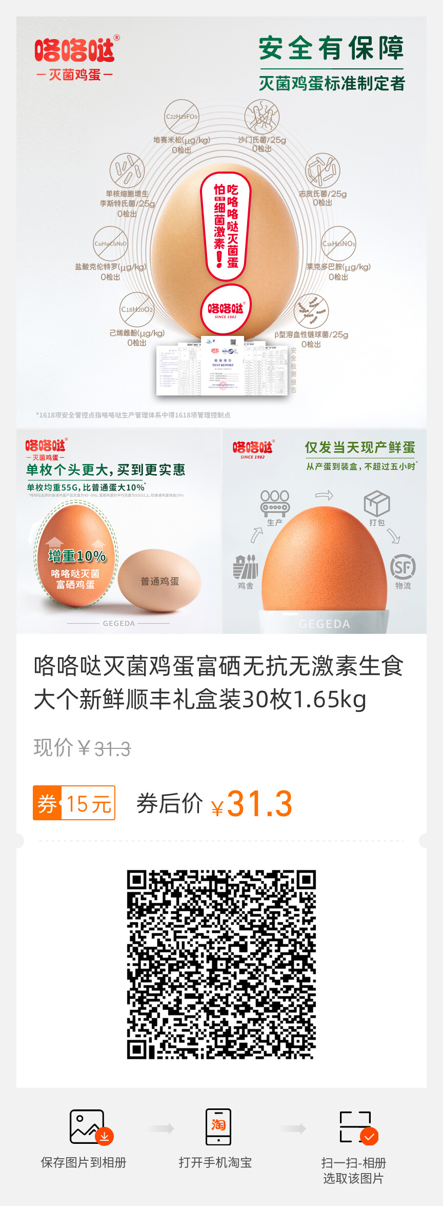 咯咯哒、灭菌鸡蛋、富硒、无抗无激素、生食、顺丰礼盒装