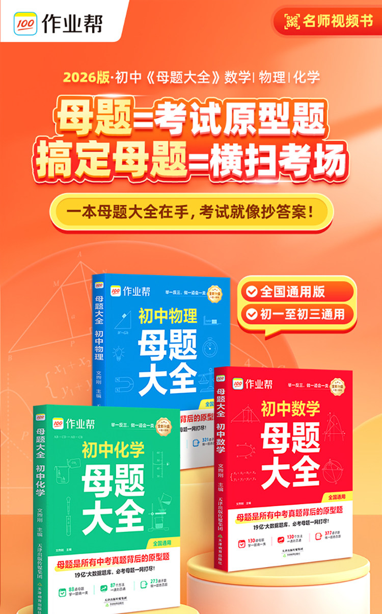 2026作业帮初中数学母题大全物理化学答题技巧模板七八九年级初一二三专项训练归纳总结初中必刷初中数学母题一本通母题提分大师