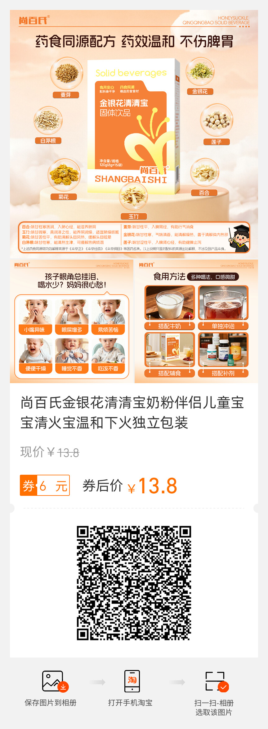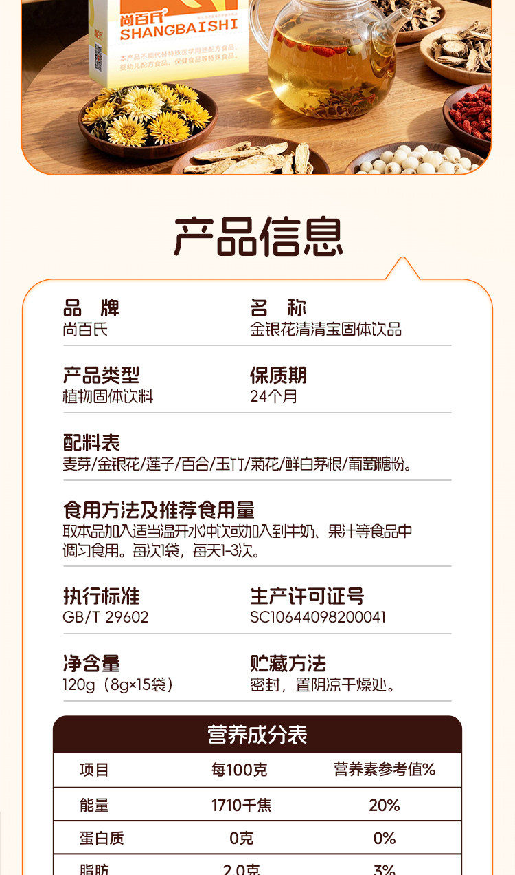 尚百氏、金银花清清宝、奶粉伴侣、儿童宝宝、清火宝、独立包装