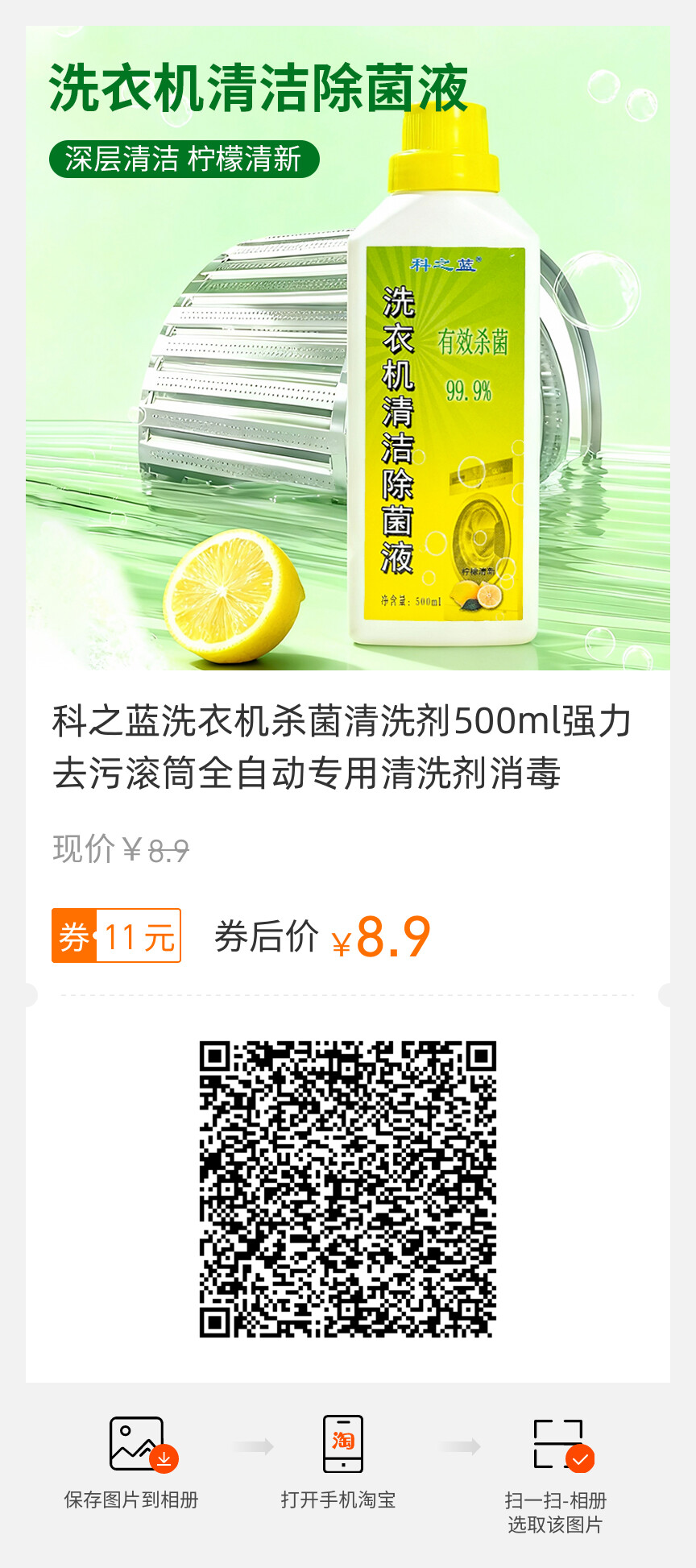科之蓝、洗衣机杀菌清洗剂、500ml、强力去污、滚筒全自动、专用消毒