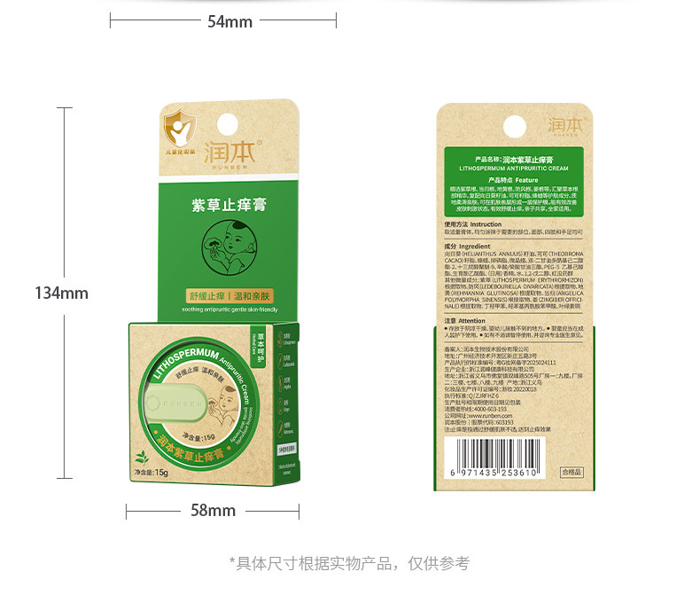 润本紫草止痒膏 婴儿童专用 蚊虫叮咬 清凉舒缓 青草棒 官方正品